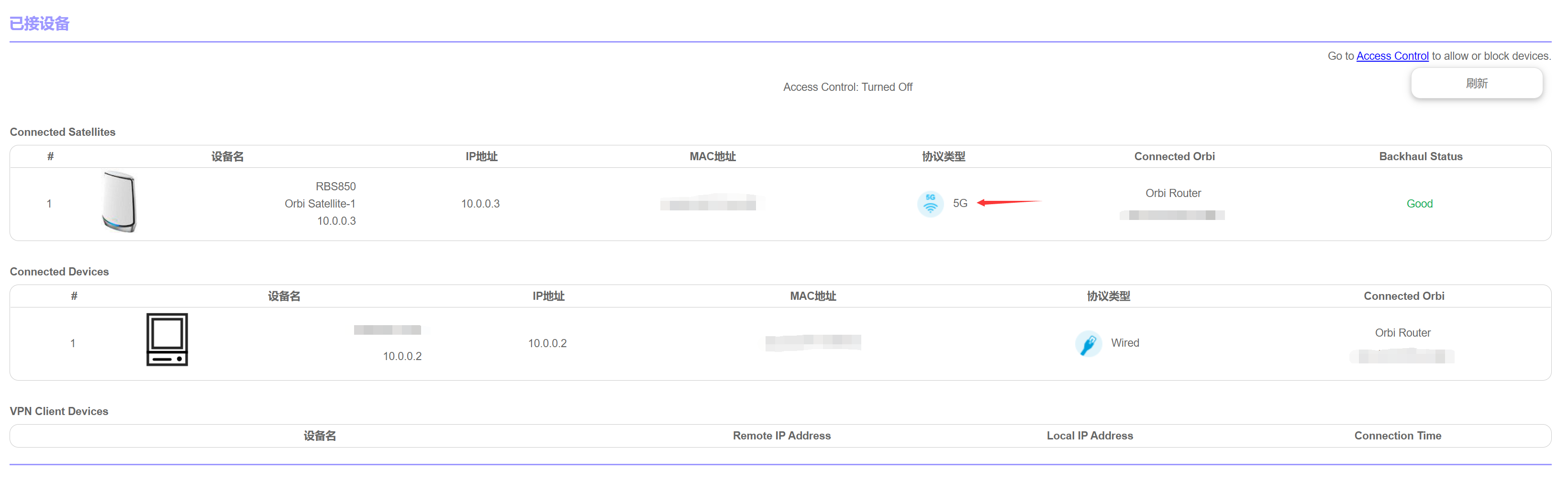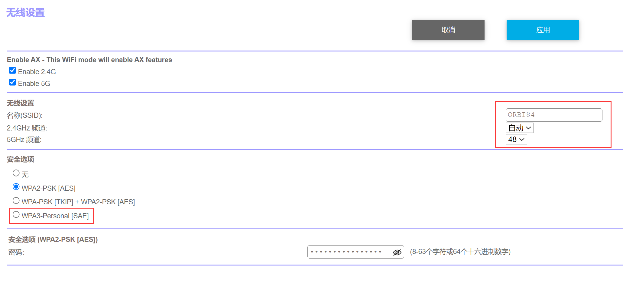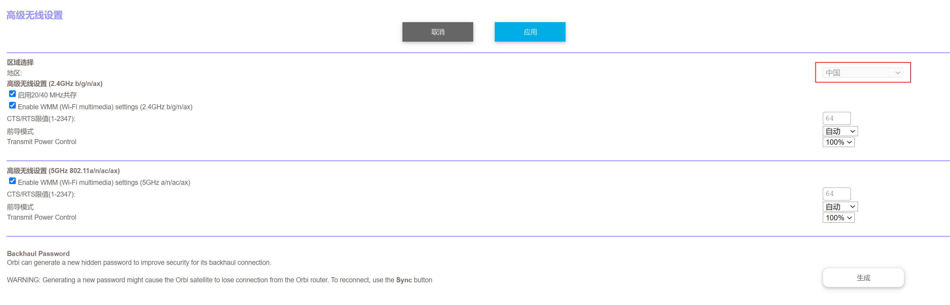 •RBR850主机和RBS850分身之间的连接方式可以是无线也可以是有线 •RBK852支持WPA3加密,但是不支持2.4G和5G的SSID分开 •RBK852国行版本不支持无线地区改区 •RBR850主机的2.5G WAN和LAN1支持端口聚合 •Debug页面中也没有Telnet选项RBK852 网页配置