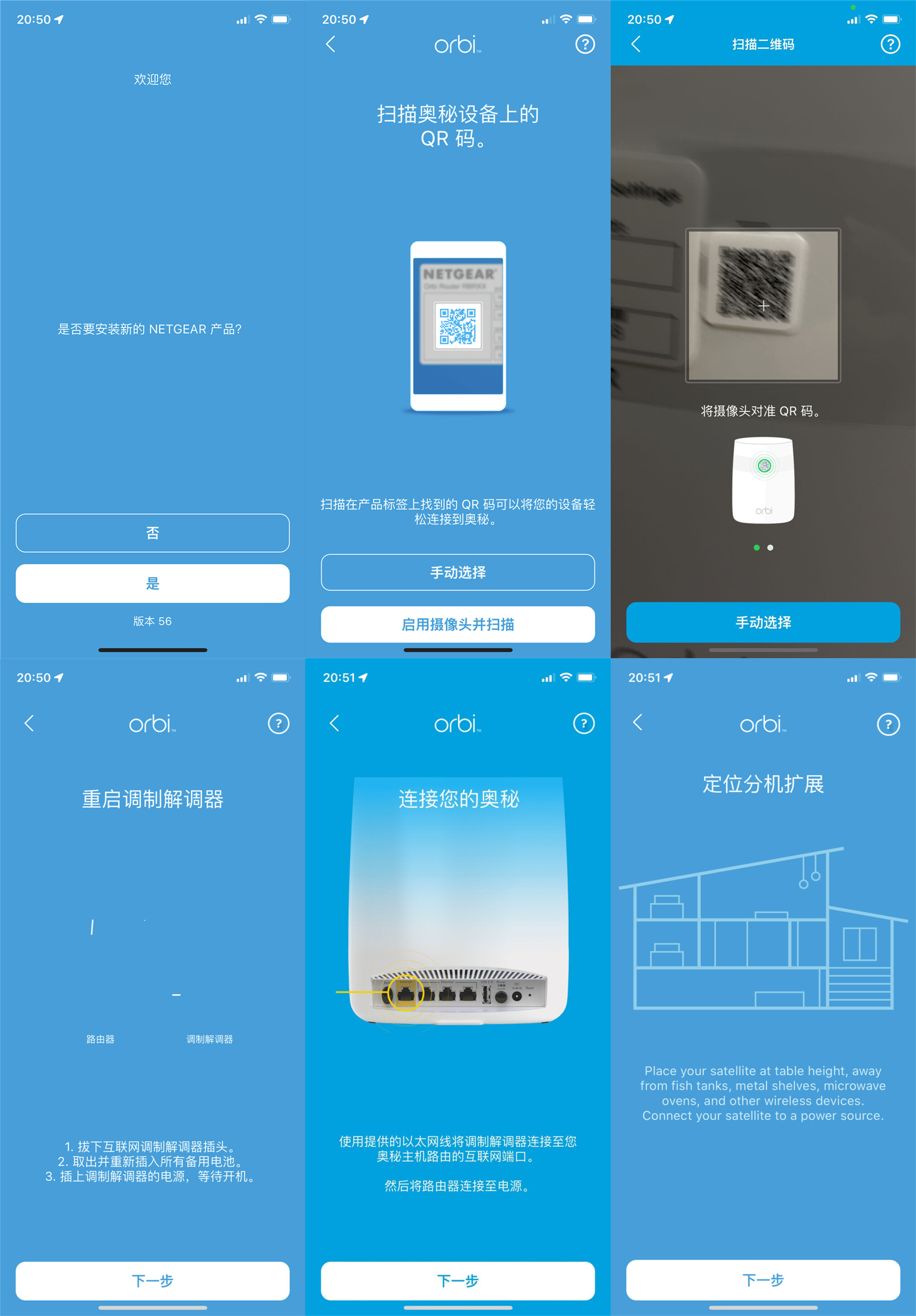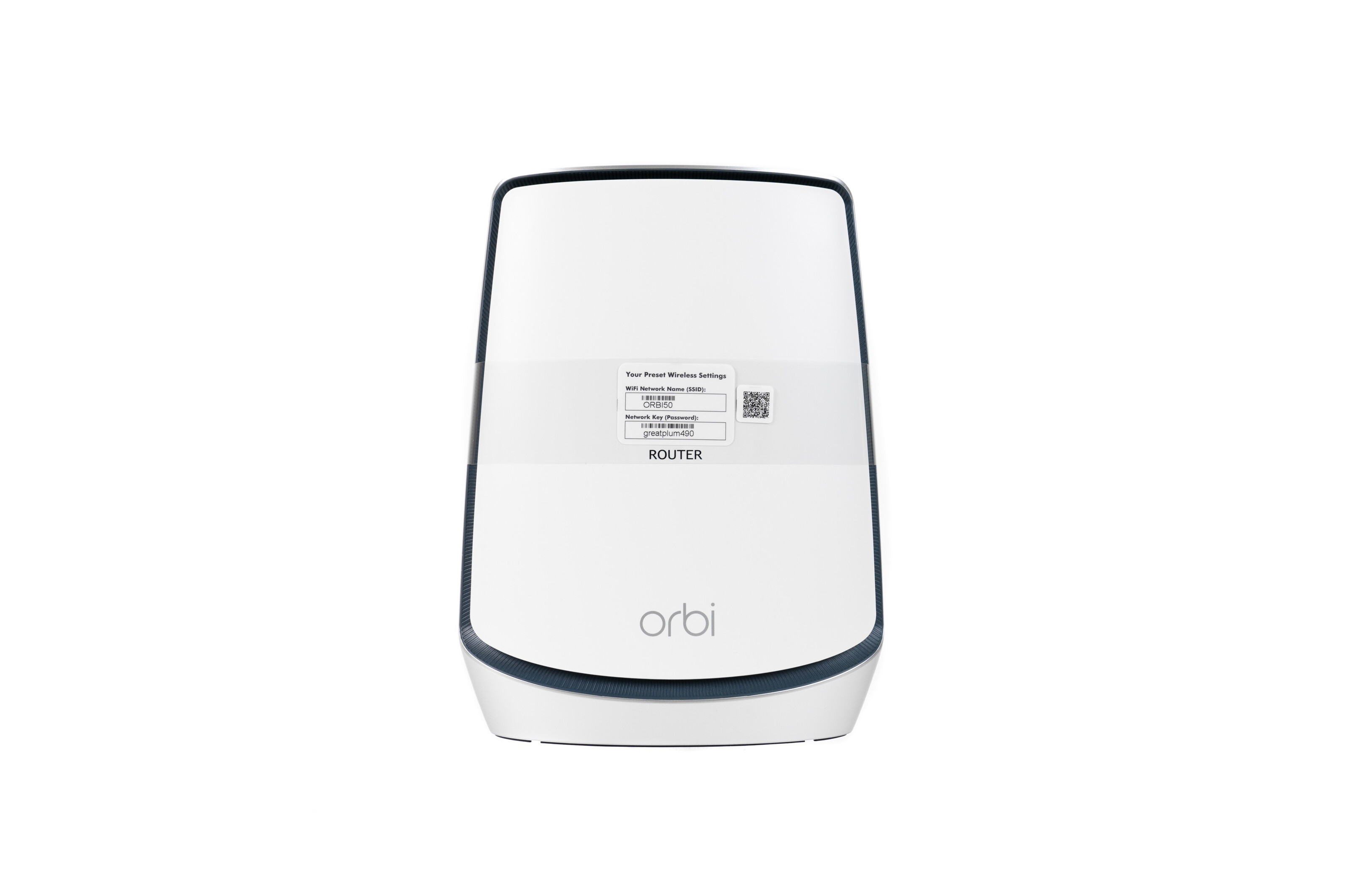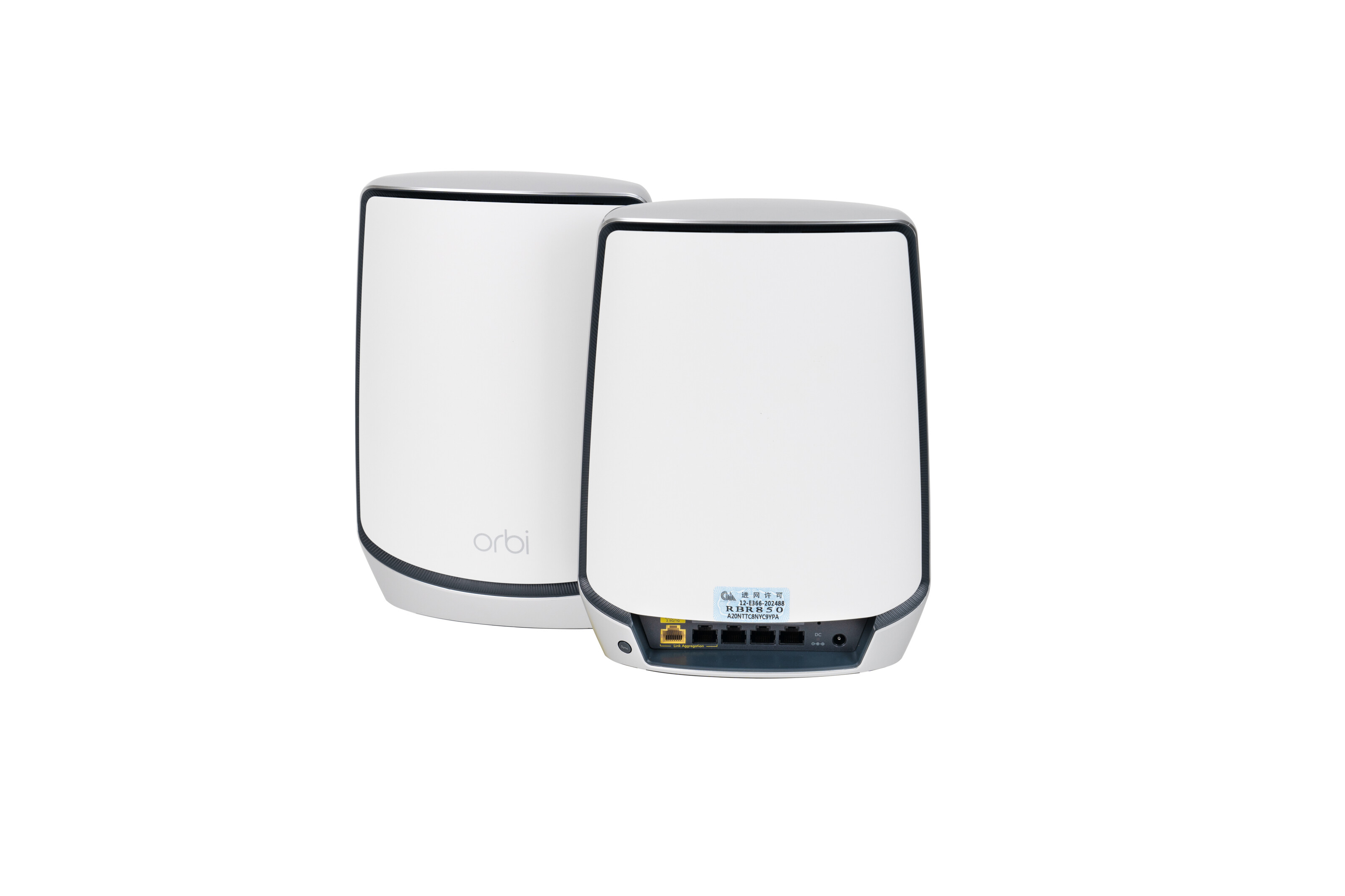 •RBK852中包含了一只RBR850路由和一只RBS850分身,外包装采用蓝白配色,可以看到这是一套三频段网状WiFi6系统,左下角的AX6000表明了它的无线规格,适用于6个房间以上的房屋 •包装盒底部是RBK852的详细规格,以及主机和分身的IO接口介绍;机器制造产地是越南 •打开包装盒的顶盖是一张快速安装指导手册和一张APP二维码下载说明;可以使用手机扫描二维码下载APP来配置RBK852,简单高效 •继续打开内包装就可以看到RBR850主机和RBS850分身以及附件盒 •打开附件,盒中装的是两只双孔电源适配器和一根超五类扁平网线 •RBR850主机正面一览。机身上套有透明的塑料环,印有QR配对码。使用ORBI APP扫描机身上的QR码可以迅速将RBR850主机添加进网络 •RBR850主机背面,国行版的机器后盖上贴有进网许可。底部IO接口从左往右分别是SYNC同步按钮,2.5G RJ45 WAN口,四个千兆RJ45 LAN口,Reset按钮,DC电源插孔。其中WAN口和LAN1口支持端口聚合 •单从正面来看,RBS850分身和RBR850主机没有任何区别 •不同之处位于背面,RBS850分身比RBR850主机少了一个黄色的2.5G WAN口;具体IO接口从左往右分别是SYNC同步按钮,四个千兆RJ45 LAN口,Reset按钮,DC电源插孔 •RBR850主机和RBS850分身合影RBK852开箱