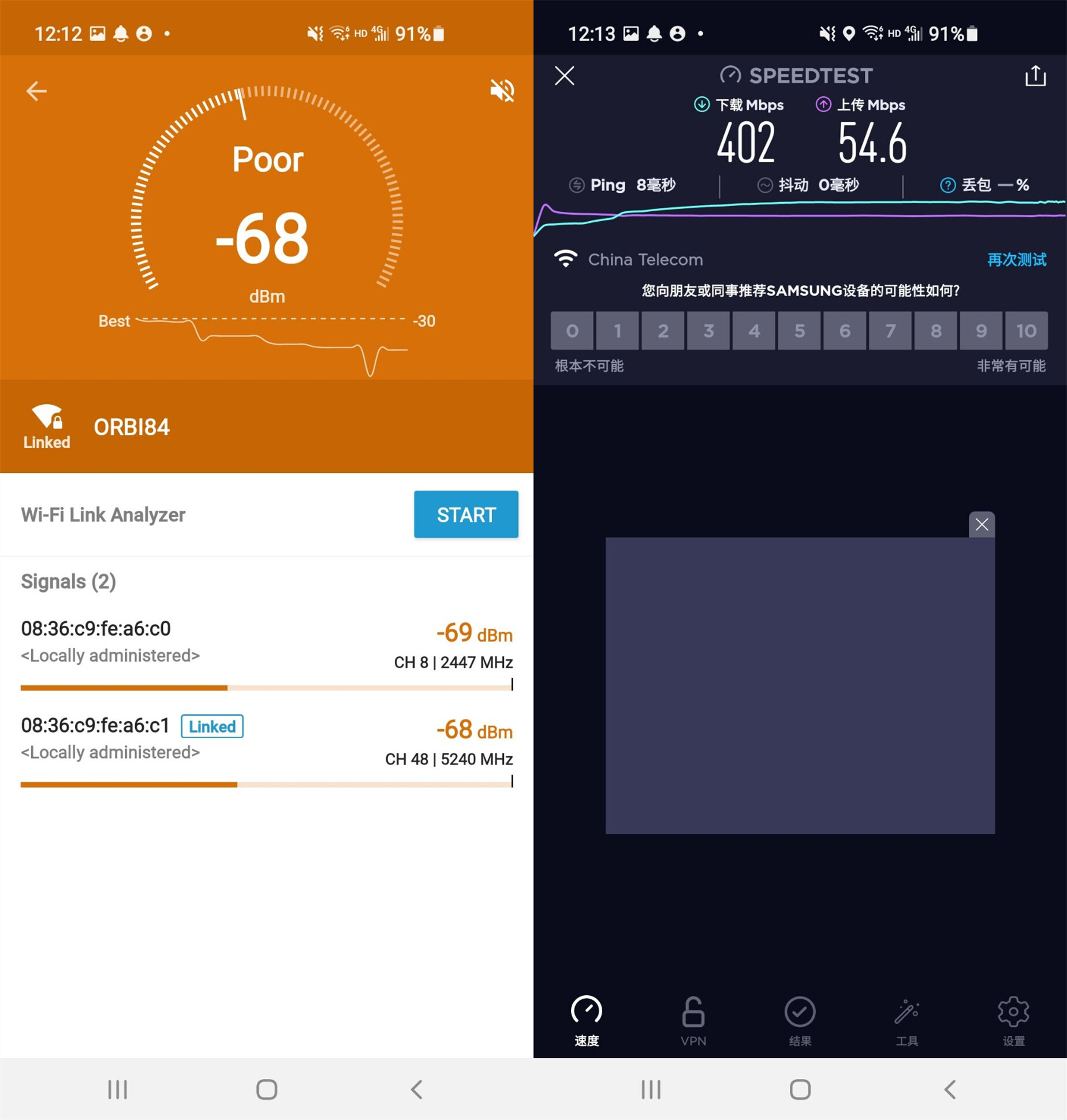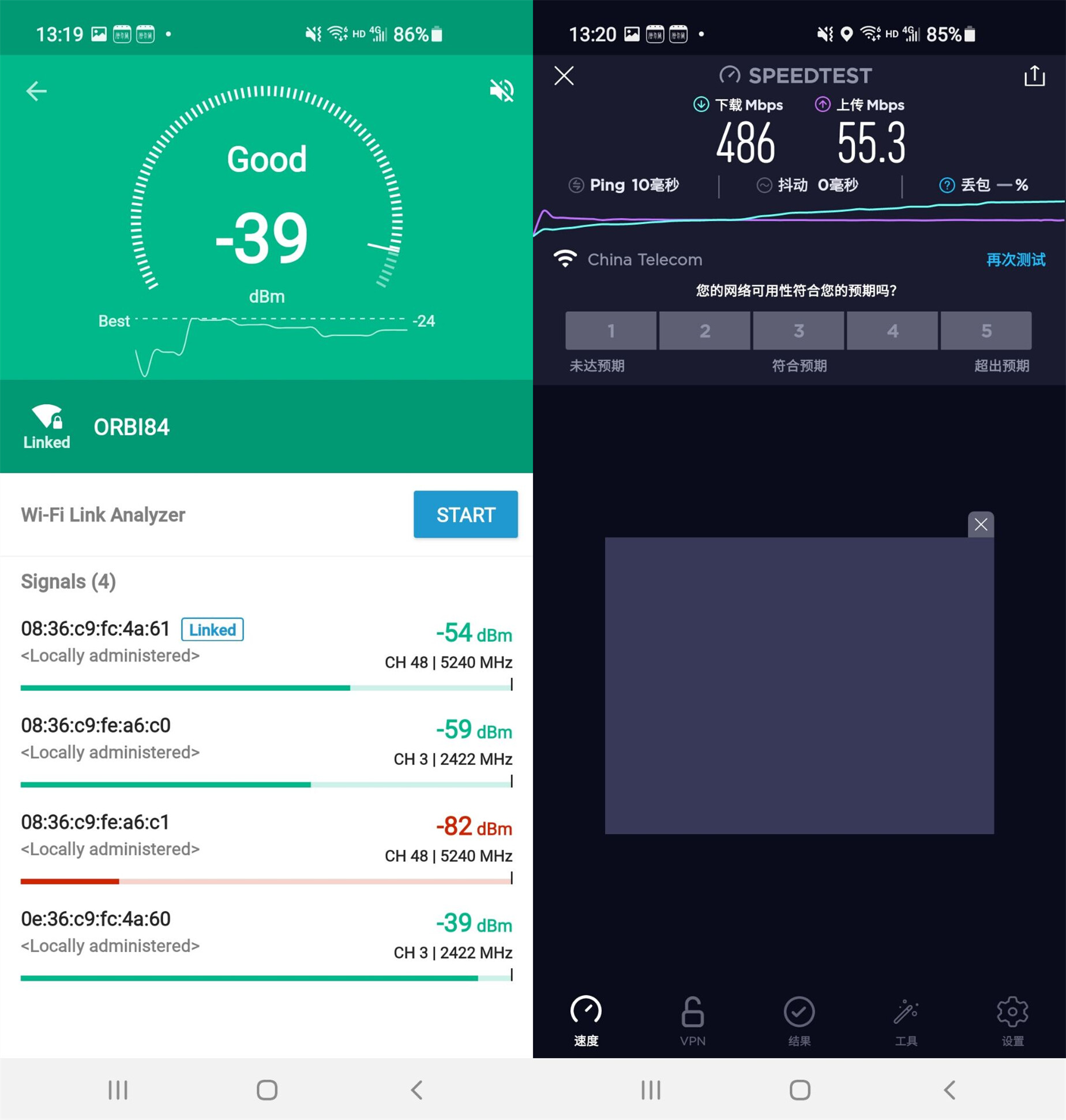 •首先降级到V3.1.5.23_1.0.46版本固件,进入debug页面开启tenet功能 •使用Telnet登录进RBR850,输入cd bin回车,输入burnsku 0x0002回车即可 •改完地区后再升级固件,无线地区依旧可以自由更改•使用RBK852覆盖楼上楼下两层,中间无法使用有线互联,所以需要选择三频的MESH路由,有专用的频段用于回程。上图是自住房,位于楼上,光猫在客厅位置,所以RBR850主机位于客厅。下图为父母房,位于楼下,RBR850主机和RBS850分身用于无线回程。楼上楼下套型一致,套内面积约90.83平,在每套户型的抽取几个重要位置进行测速 •RBK852设为美国地区 •宽带速率为500M下行,50M上行 •楼上客厅位置2.4G和5G信号强度以及SpeedTest测试 •楼上餐厅位置2.4G和5G信号强度以及SpeedTest测试 •楼上卧室1位置2.4G和5G信号强度以及SpeedTest测试 •楼上卧室2位置2.4G和5G信号强度以及SpeedTest测试 •楼下餐厅位置2.4G和5G信号强度以及SpeedTest测试 •楼下卧室2位置2.4G和5G信号强度以及SpeedTest测试 •楼下卧室1位置2.4G和5G信号强度以及SpeedTest测试 •楼下客厅位置2.4G和5G信号强度以及SpeedTest测试RBK852 信号测试