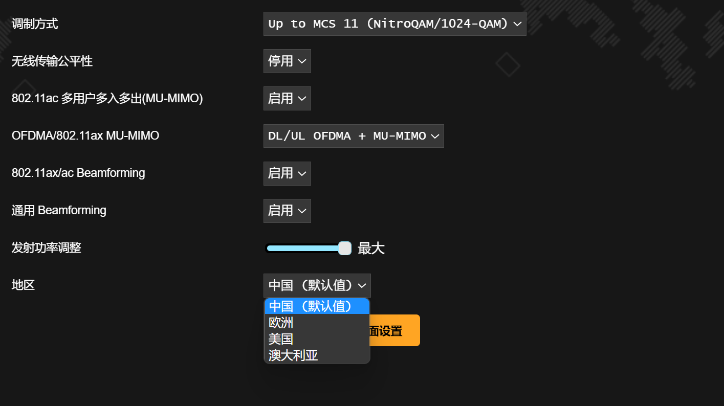 ▲有线宽带为江苏电信10G EPON千兆宽带,签约下行1000M,上行50M ▲Speedtest测速 ▲TUF-AX3000 V2无线地区为澳大利亚时;2.4G发射功率为27dBm,5G发射功率为25dBm ▲TUF-AX3000 V2无线地区澳大利亚。其所在位置已在上图标出各房间大致面积说明