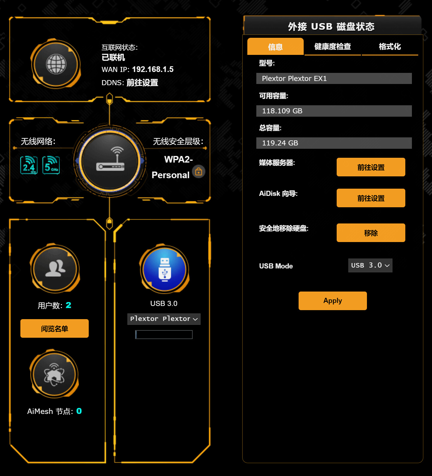 ▲室内温度在23.3度左右,湿度在66.6%附近 ▲TUF-AX3000 V2的2.5G WAN口和1G LAN3口占用,LAN1、LAN2、LAN4空闲,带机数量10台 ▲此时SoC的温度在61度左右 ▲TUF-AX3000 V2的实时功耗在7.14W左右,24小时用电量在0.16度左右总结