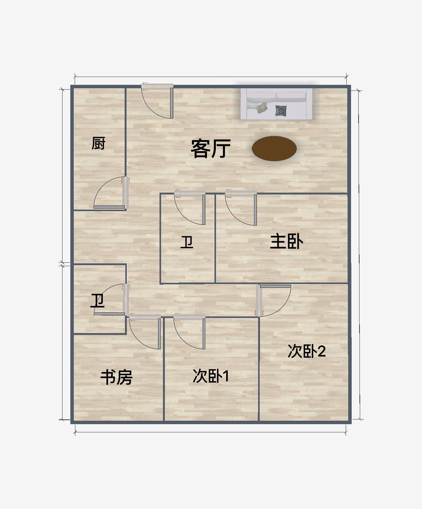 Z的新居是一个247平的四居室(不得不说真是有钱),房型四四方方相比较狭长的房型还是不错的,但问题也来了,这种房型的困扰就是是墙体过多。装修使用的户型图有些乱,为了更清晰我画了一个简易的户型图,附在下面——