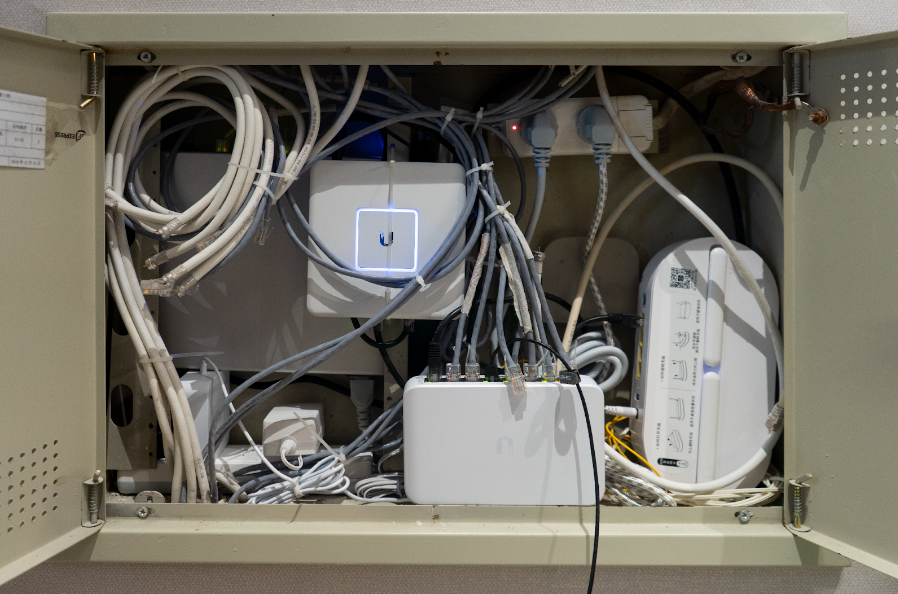 (弱电箱中的USG和USW-Lite-8-PoE)