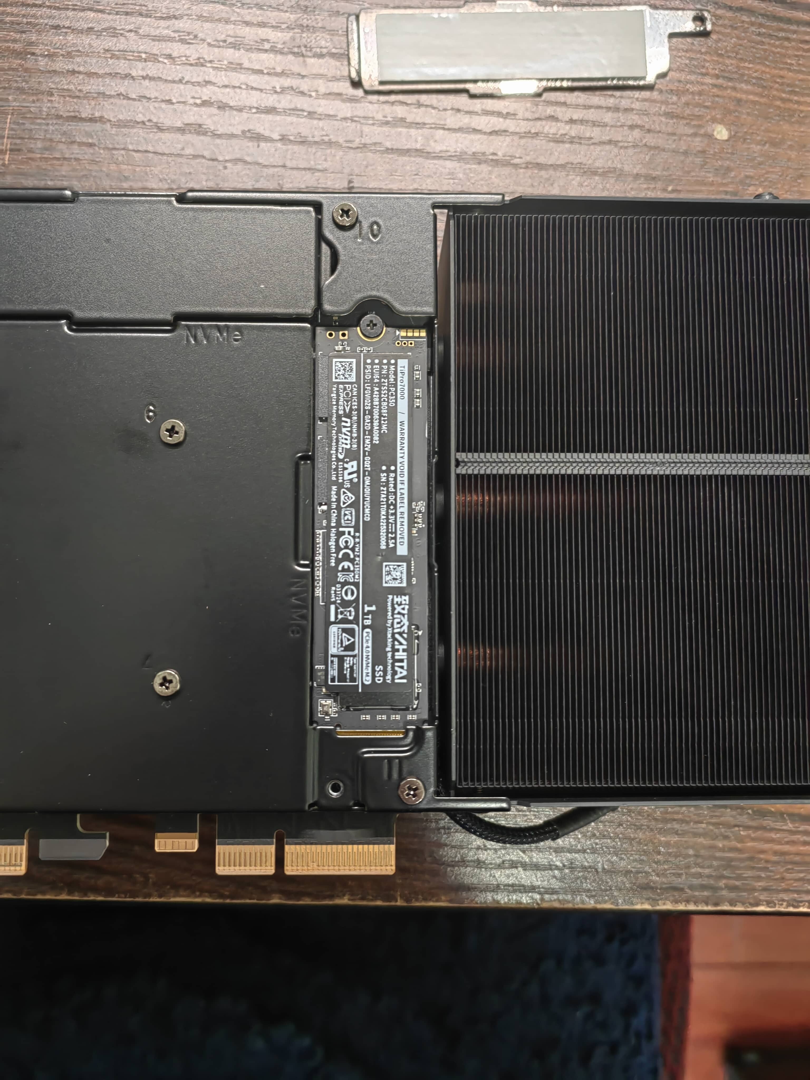 插上SSD,机器自带了散热胶,非常方便。注意一下说明书上有写NVME1/2/3。强迫症找了半天插到了NVME1上。