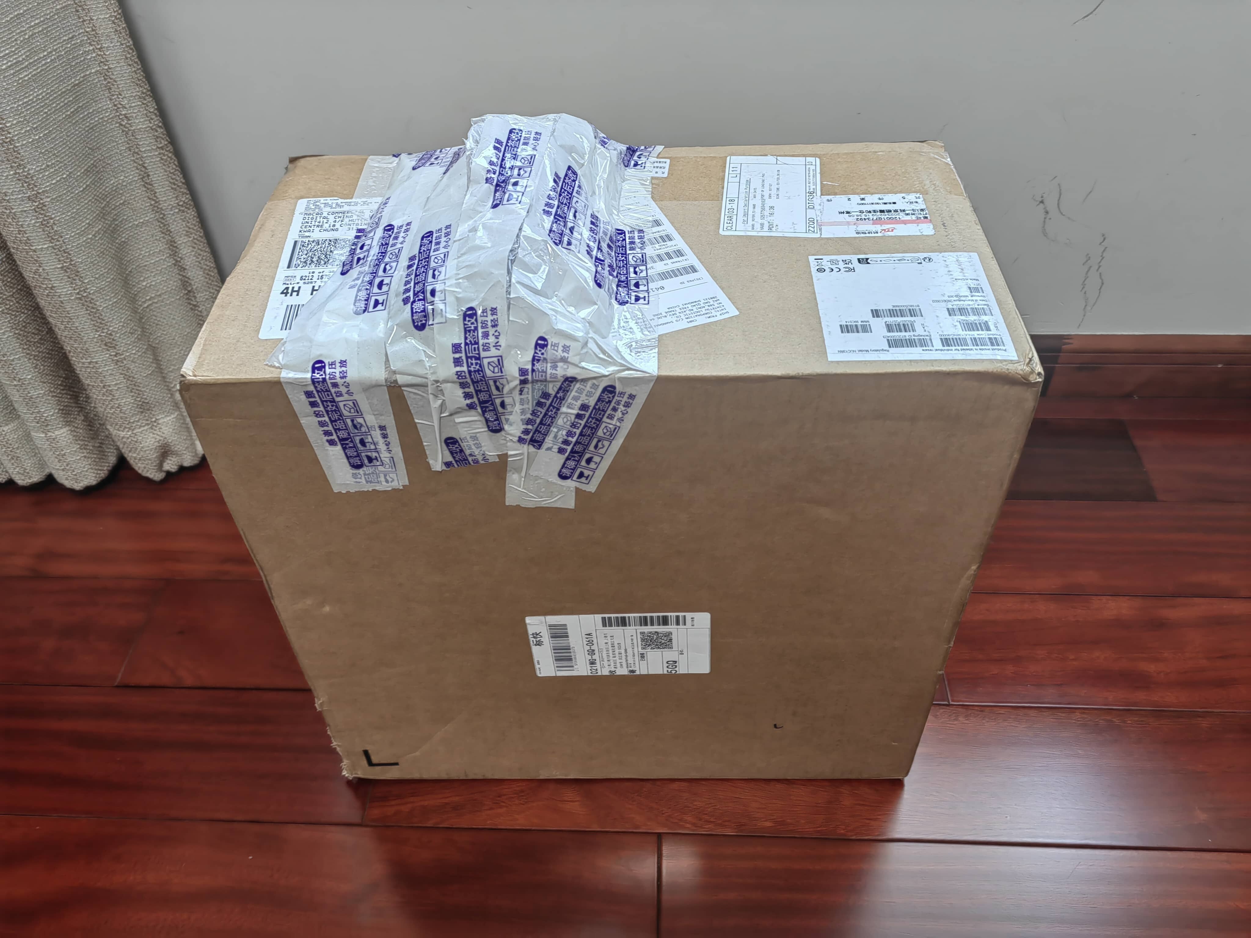 机器到手,先看看外包装。包装分为了两层,外层一个典型工业风格的外包装。内部是黑色彩绘包装。