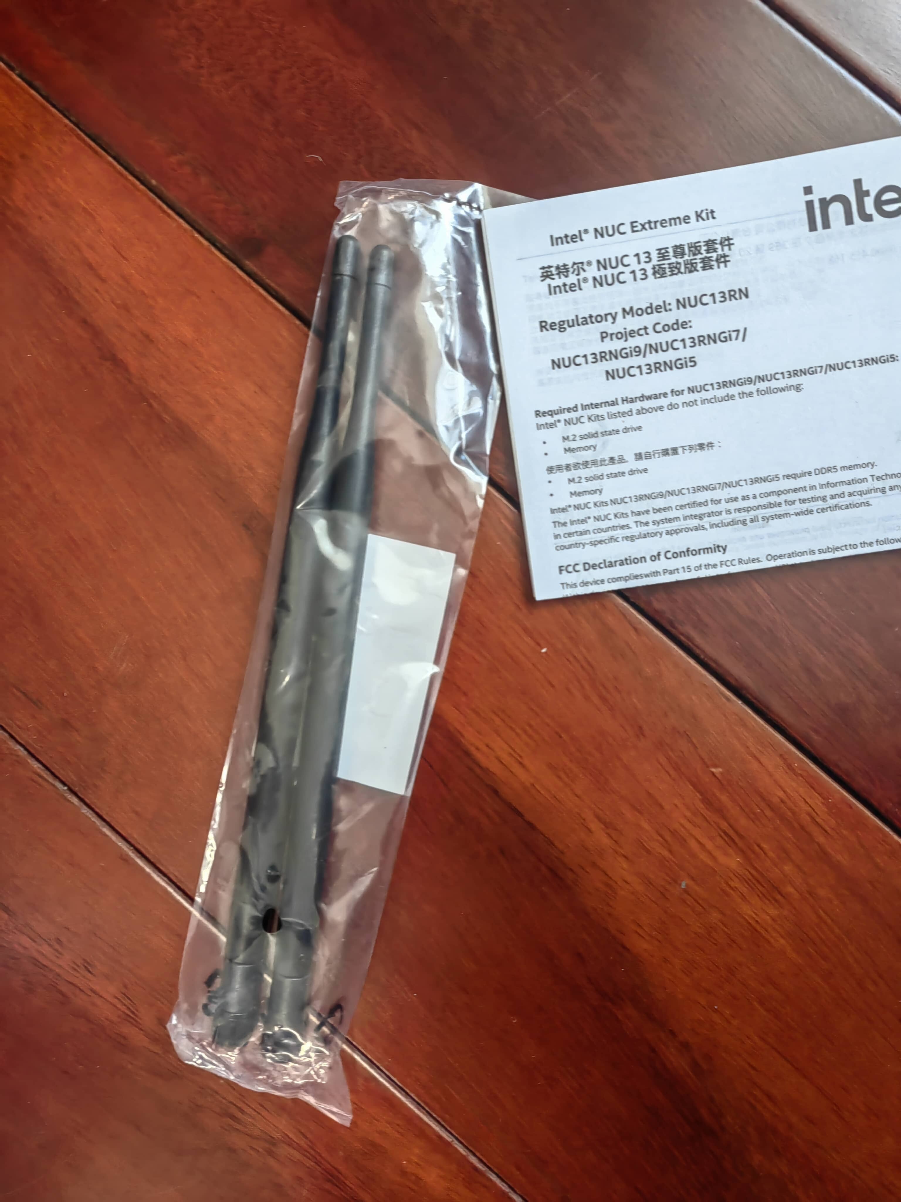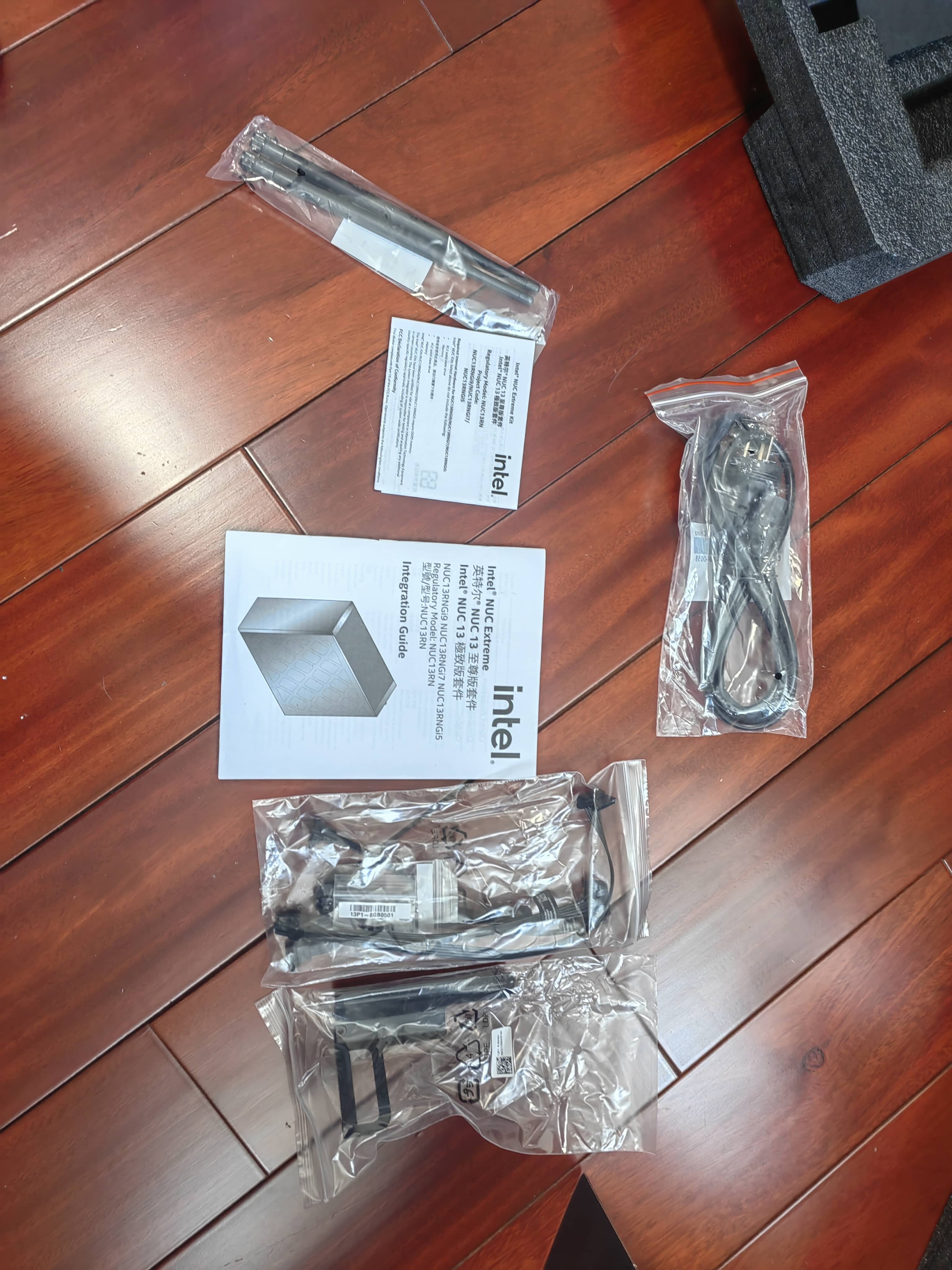 上面有一坨非常突兀的胶带。初拿到的时候非常疑惑,打开发现这回商家非常贴心地附赠了电源线。以往NUC是不带的,导致之前出售二手机器的时候,买家还因此和我发生了一些不快。0-0