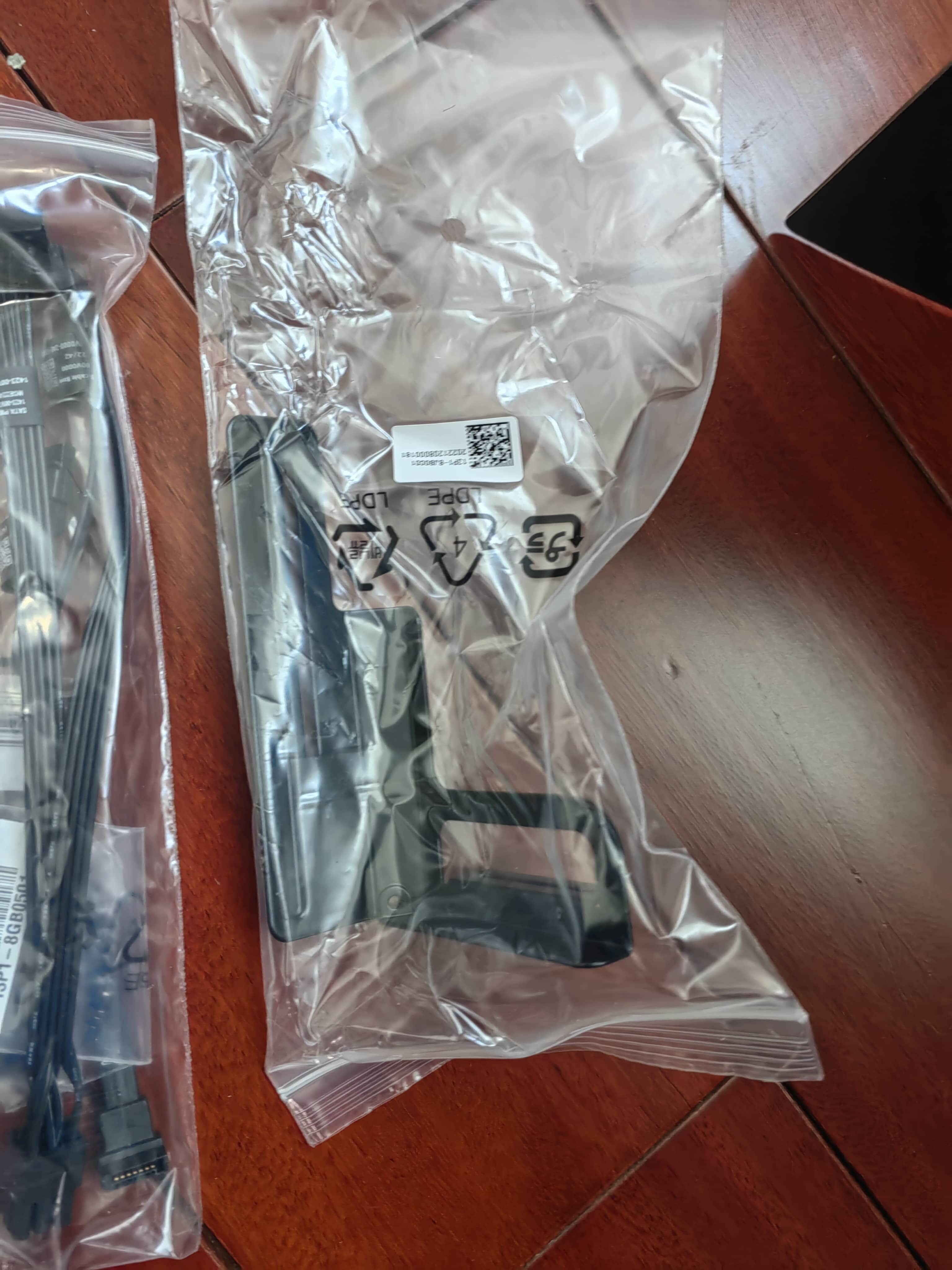 配件一览,两张不用看,一包天线,一包在外面捆着的电源线,一套螺丝和SATA电源线以及显卡支架。