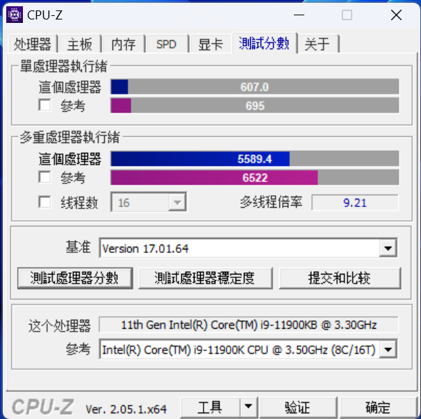 11代R23单核1635,多核11221,13代单核1992,多核28199;CPU-Z 11代单核607,多核5589,13代单核892.1,多核15330。单核和多核性能都体现了巨大的碾压。