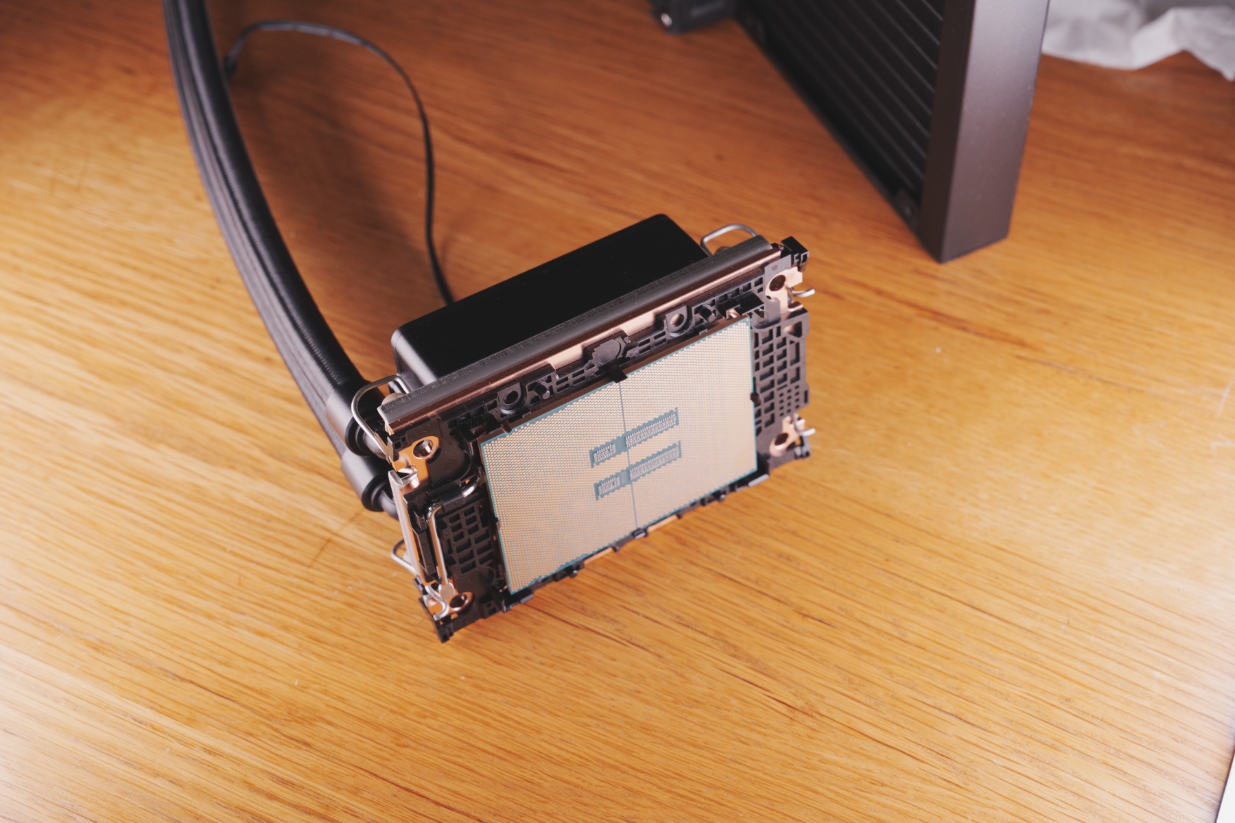 CPU按照方式也和以往LGA3647、LGA4189这种巨型插槽一样,要使用托架将CPU按照在散热器上,然后再将散热器整体扣在CPU插槽中,插槽本身不提供压力扣具