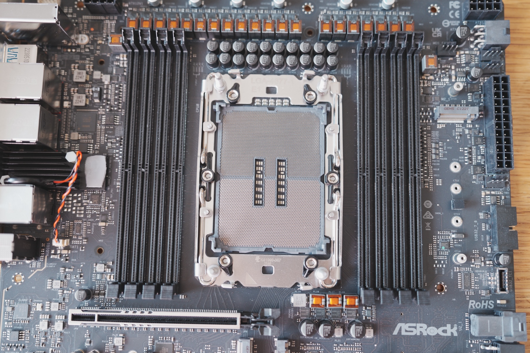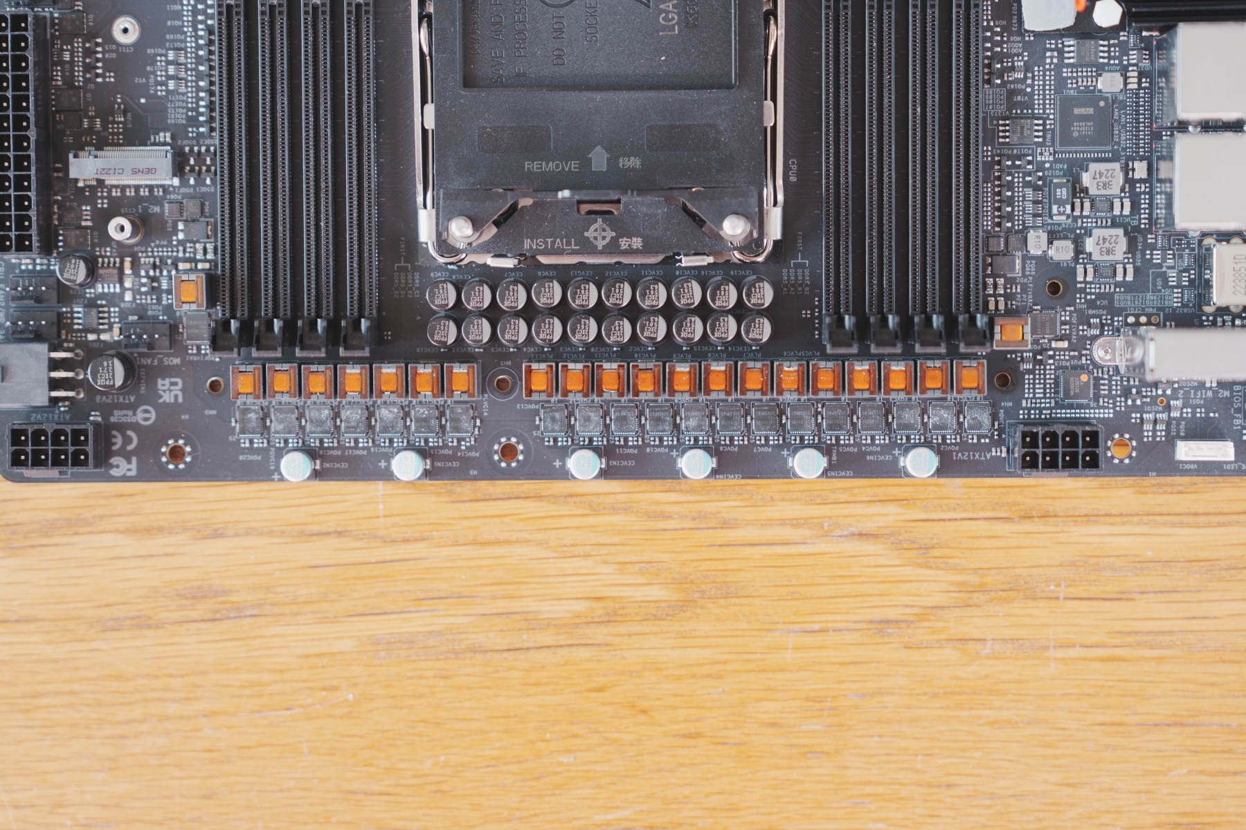 这种设计方式我倒是也可以理解,如果完全按照W-34XX的规格做一款主板的话,那么这种主板在使用W-24XX CPU时会导致部分PCI-E插槽和一半的内存插槽不可用,这也是一个问题呢。相比之下究竟是主板浪费还是CPU浪费的问题,从主板厂商的角度考虑自然是减少自己这边的浪费。
