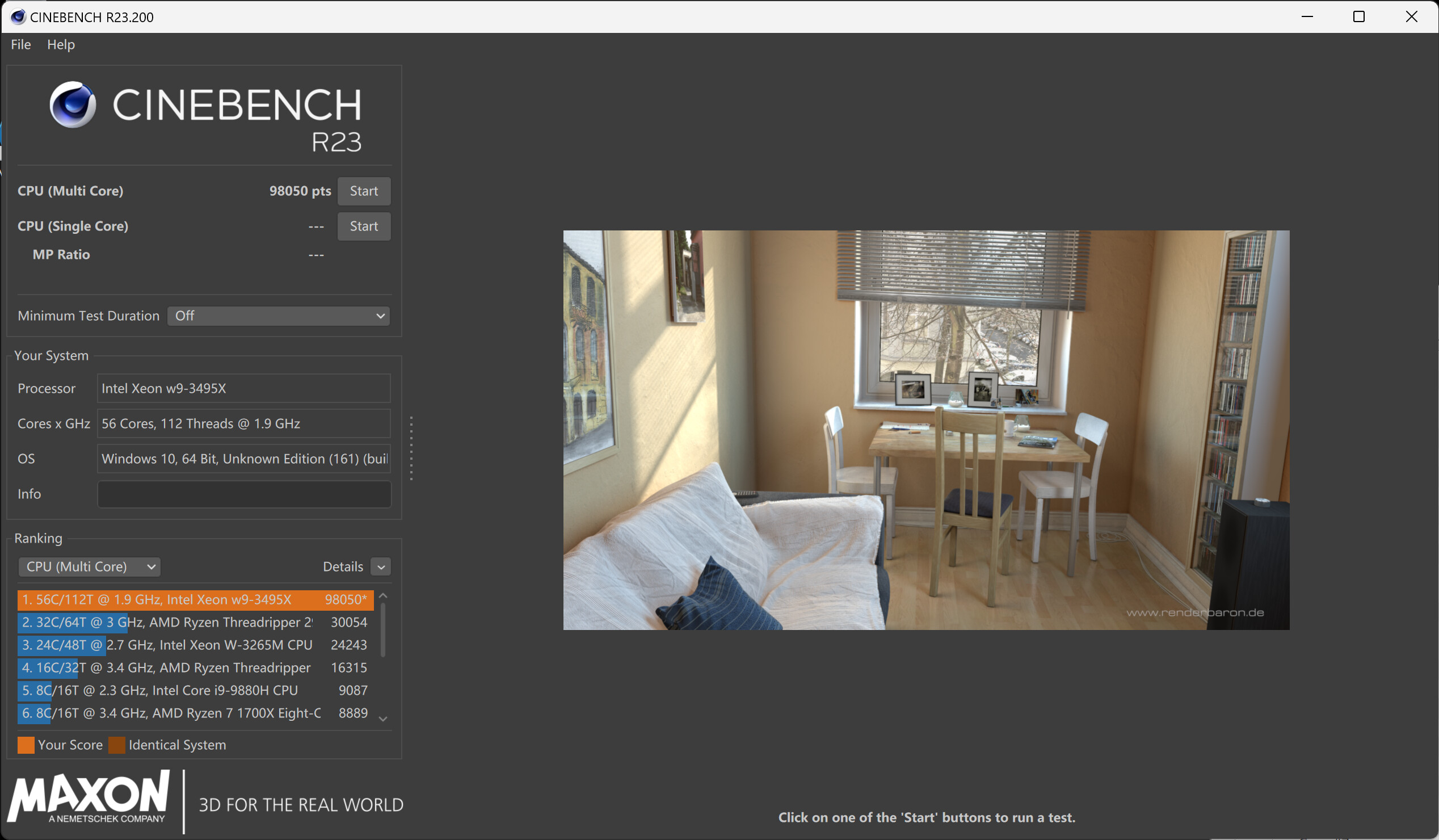 最终可以在全核心4.0GHz顺利跑完CineBench R23,能够跑到接近10万分,此时功耗约为900瓦