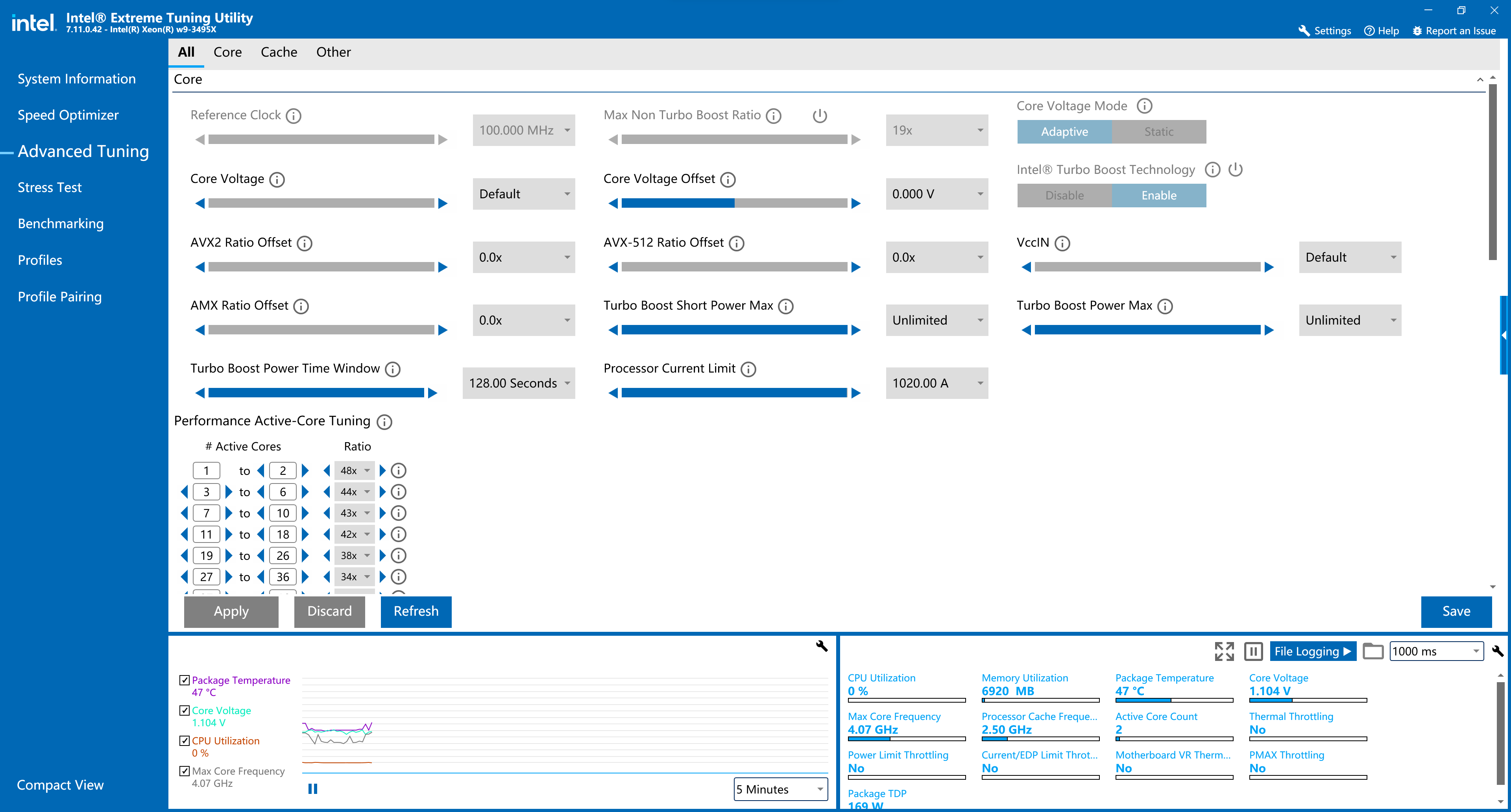 除了BIOS之外,Intel XTU工具也提供了一部分超频选项,虽然没有BIOS那么全面,不过好在不需要重启即可生效