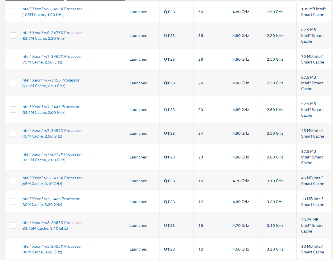 此次XEON-W一共推出了两个系列的CPU,分别时24XX系列与34XX系列。
