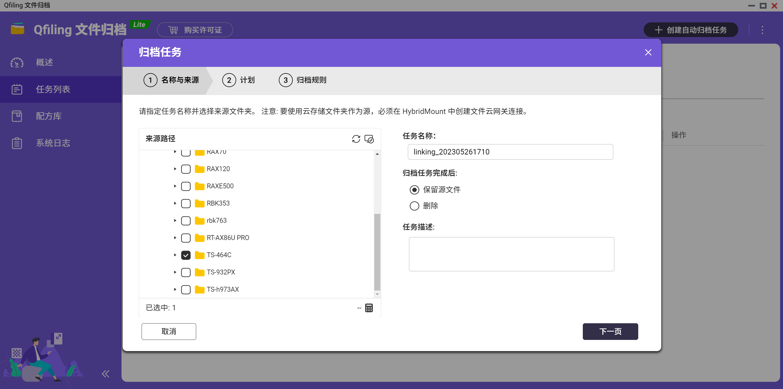 排程任务:可自定义排程计划,按时、日、周、月等时程,让系统在背景自动执行存档任务