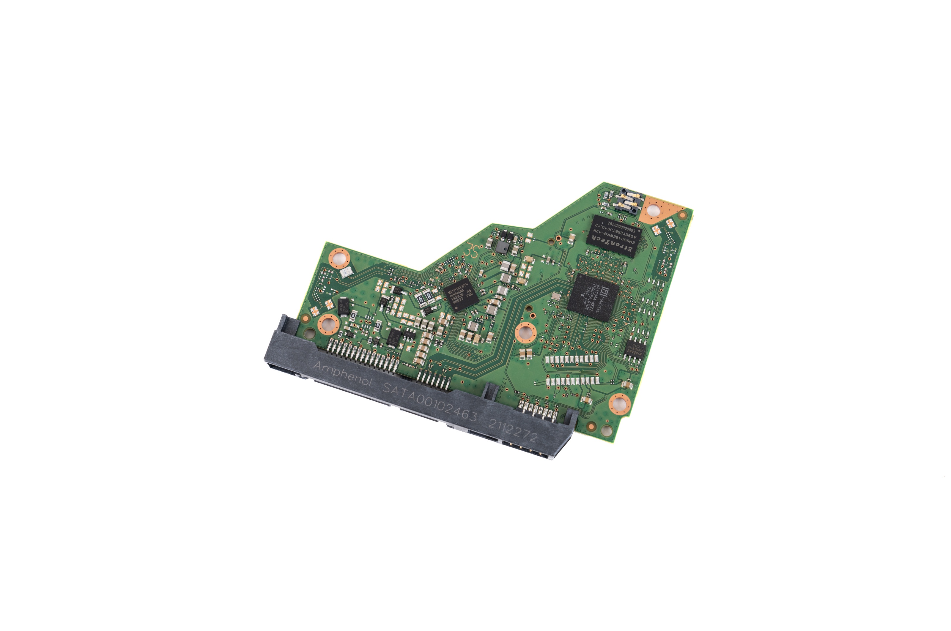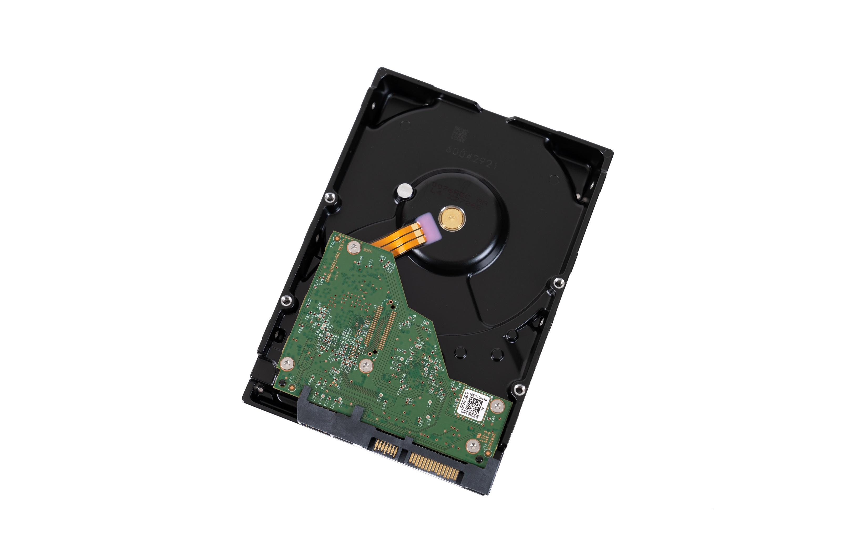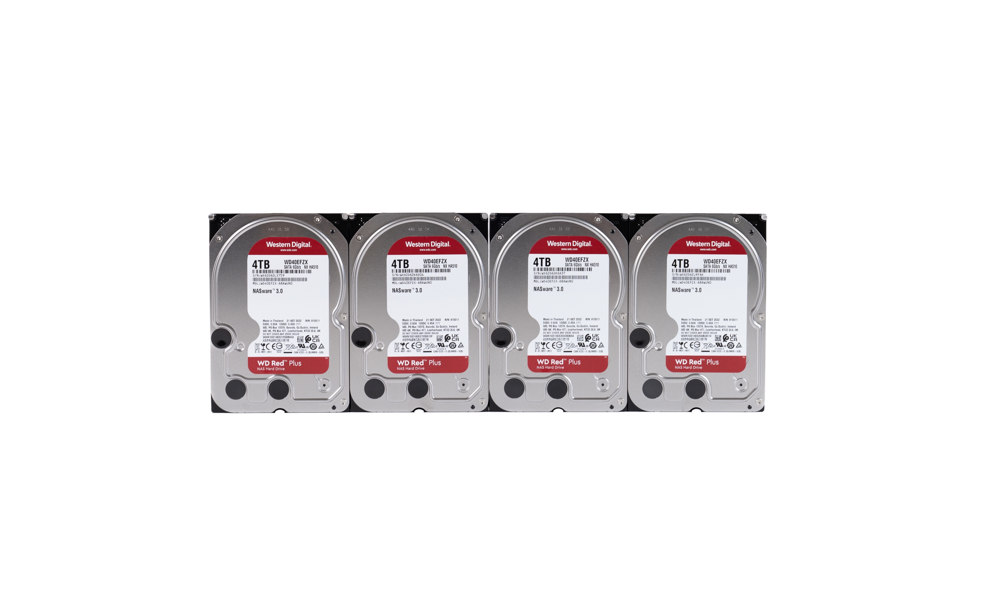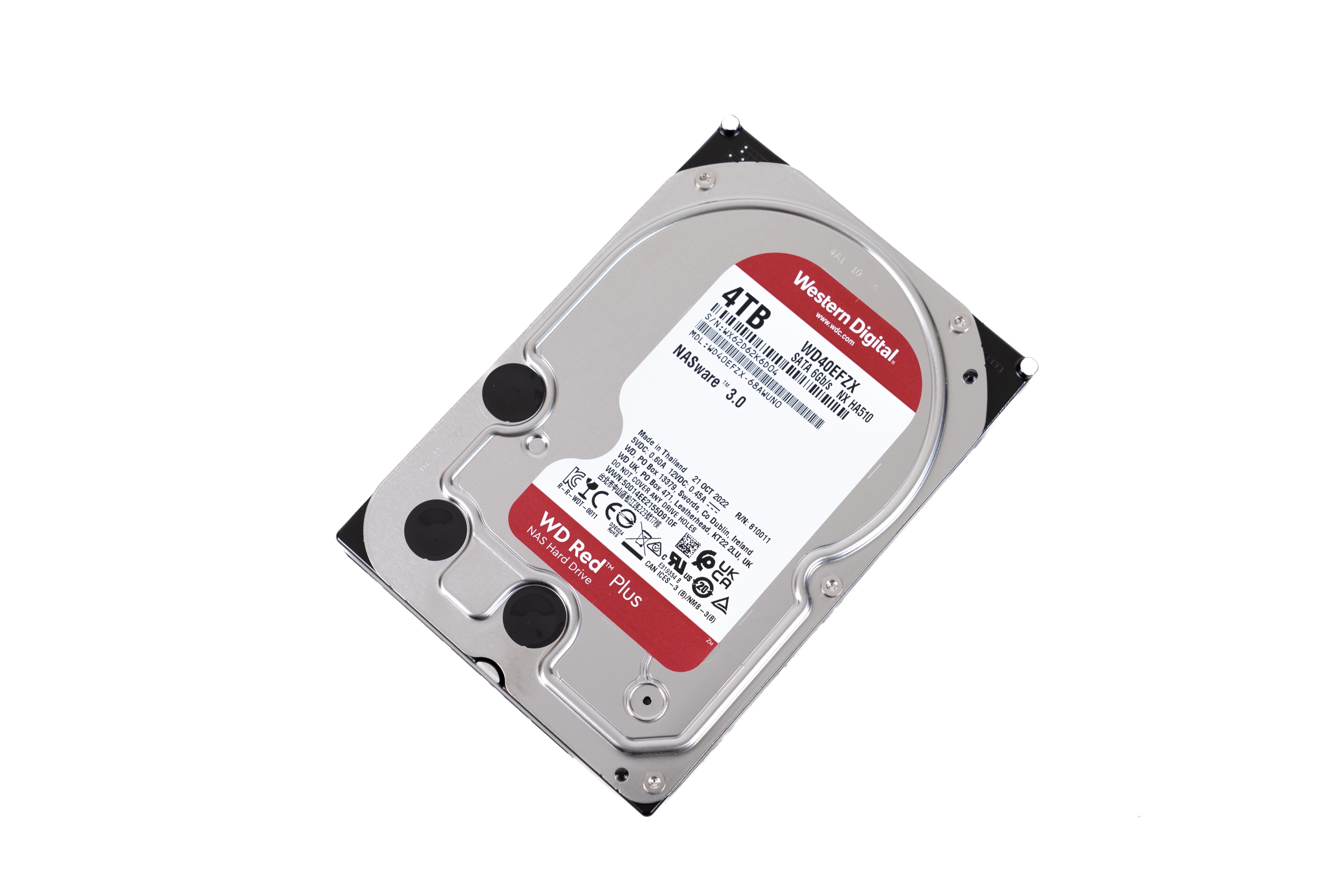 ▲本次为TS-464C2准备的HDD是四块红盘WD40EFZX 4TB ▲WD40EFZX 4TB属于WD Red Plus系列,采用CMR技术,5400RPM,泰国制造 ▲背面一览。PCB板通过螺丝固定在盘体上 ▲拆下PCB主板,PCB主板与盘体电路采用公母座互联 ▲PCB主板正面一览。EM6GC16EWKG-12H,DRAM缓存,大小为128MB,来自钰创科技;主控为88i1054,制造厂商是Marvell ▲WD40EFZX 4TB硬盘专为NAS系统而优化,其采用的独特算法,能在NAS和RAID环境中实现性能和可靠性的完美平衡拆解视频