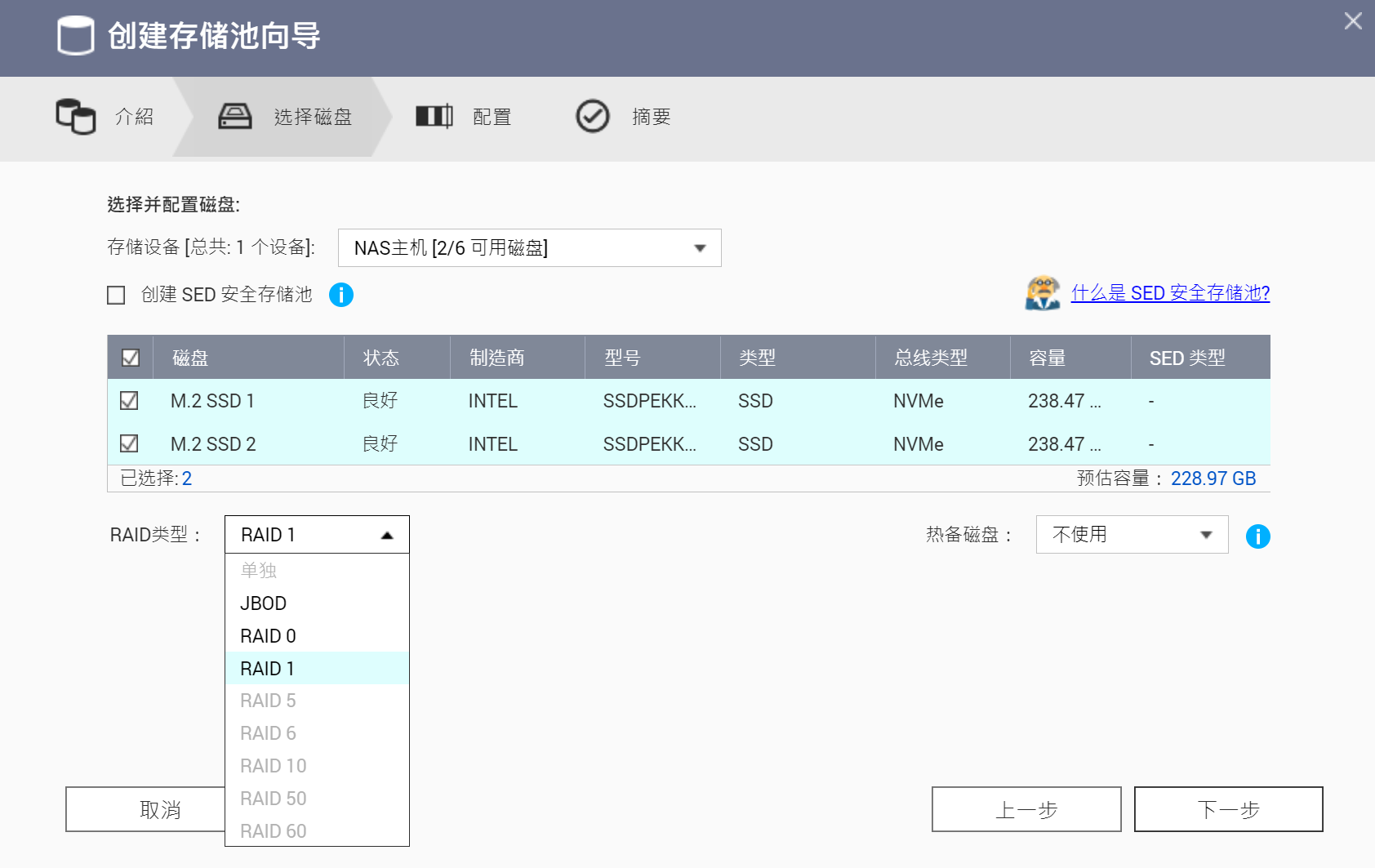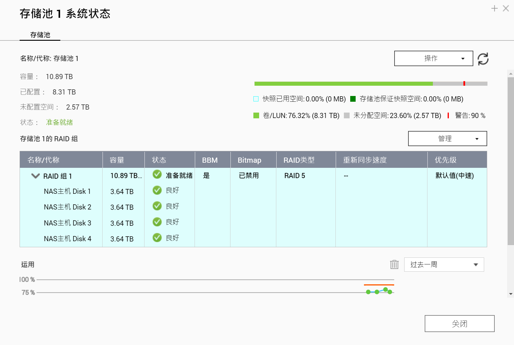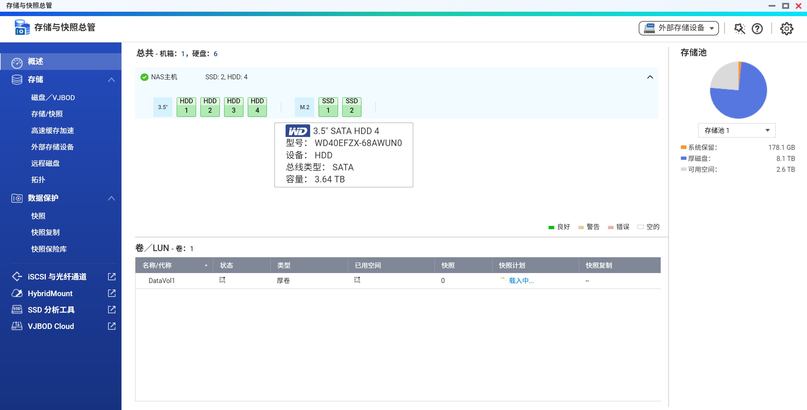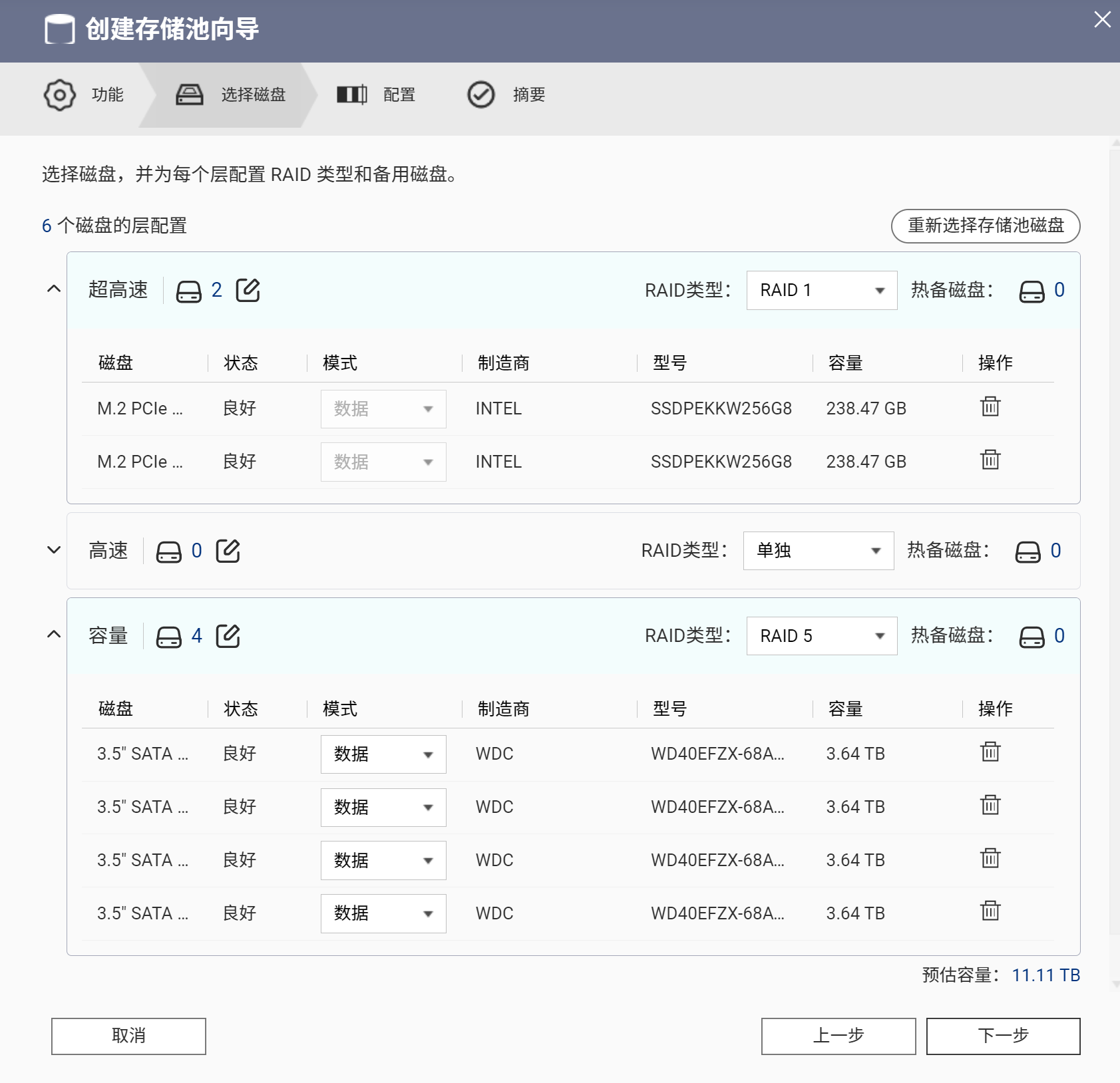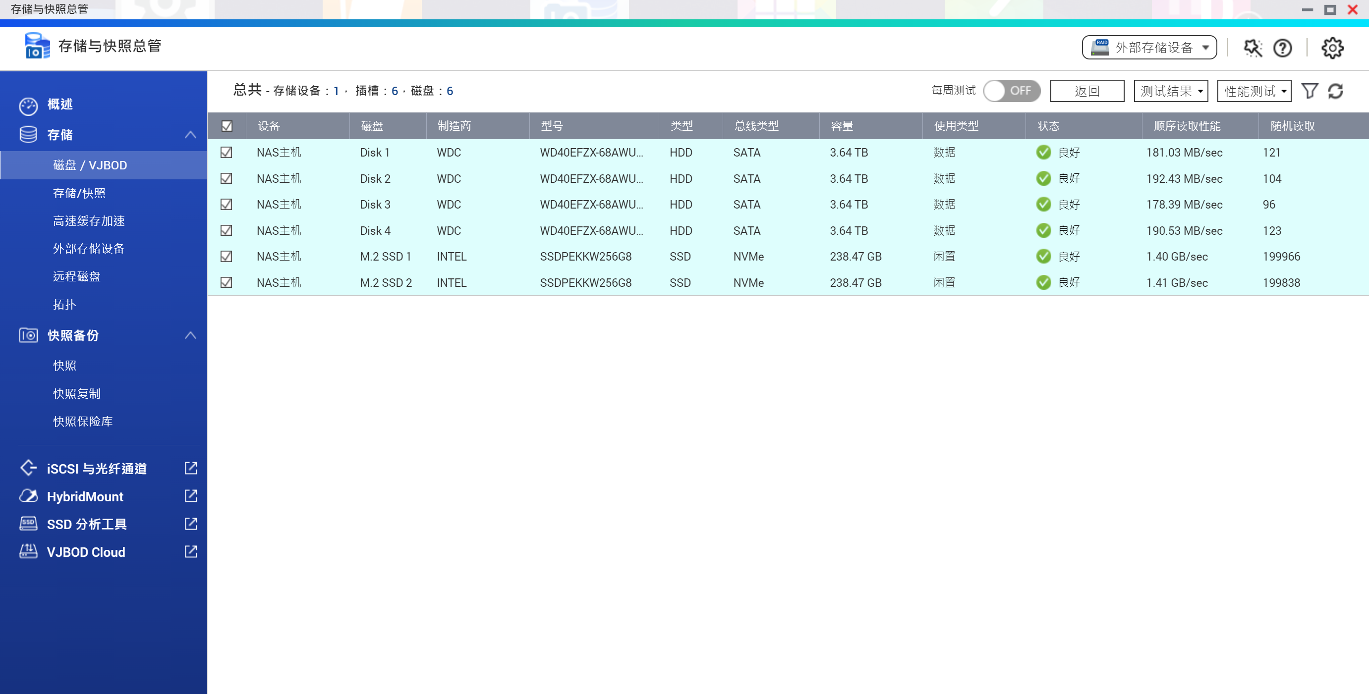 4块WD40EFZX 4TB RAID5 + 2块intel 760p 256G RAID 1读写缓存加速
