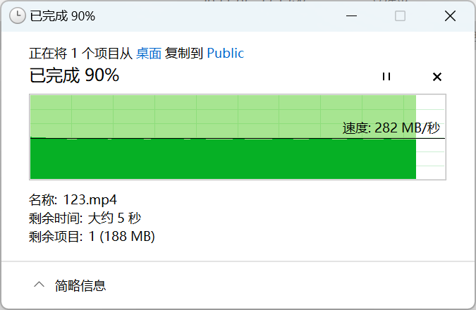 ▲2块intel 760p 256G RAID 1 ▲使用2.5G LAN口向NAS中上传文档,此时TS-464C2的写入速度为282MB/s ▲使用2.5G LAN口从NAS中取回文档,此时TS-464C2的读取速度为282MB/s ▲挂载iSCSI储存CrystalDiskMark测试SMB 3.0 Multichannel