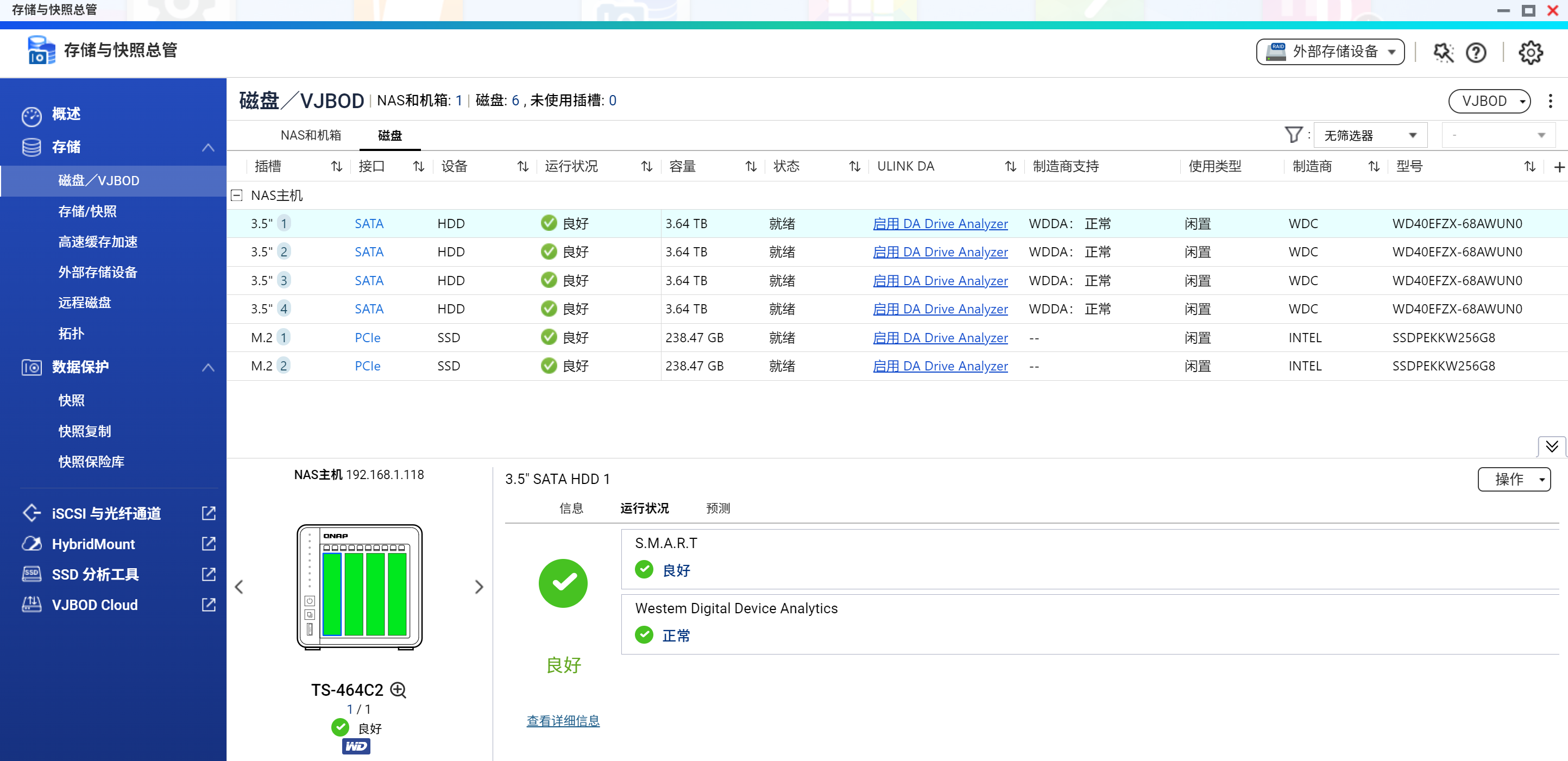 ▲QNAP TS-464C2搭载全新QTS 5.0,可以手动升级到beta版固件5.1.0 ▲双M.2 NVMe SSD可作为高速缓存,加速读写效率 ▲也可以作为单独的储存池来存放需要频繁读写的文件,达到最高的存取效率 ▲或者使用Qtier功能,可以自动分层储存,需要经常访问的数据就直接访问M.2 SSD,不经常访问的数据就存储到机械硬盘 ▲配置好6个磁盘即可,注意Qiter功能启用后无法禁用S.M.A.R.T. 检测与毁损区块扫描