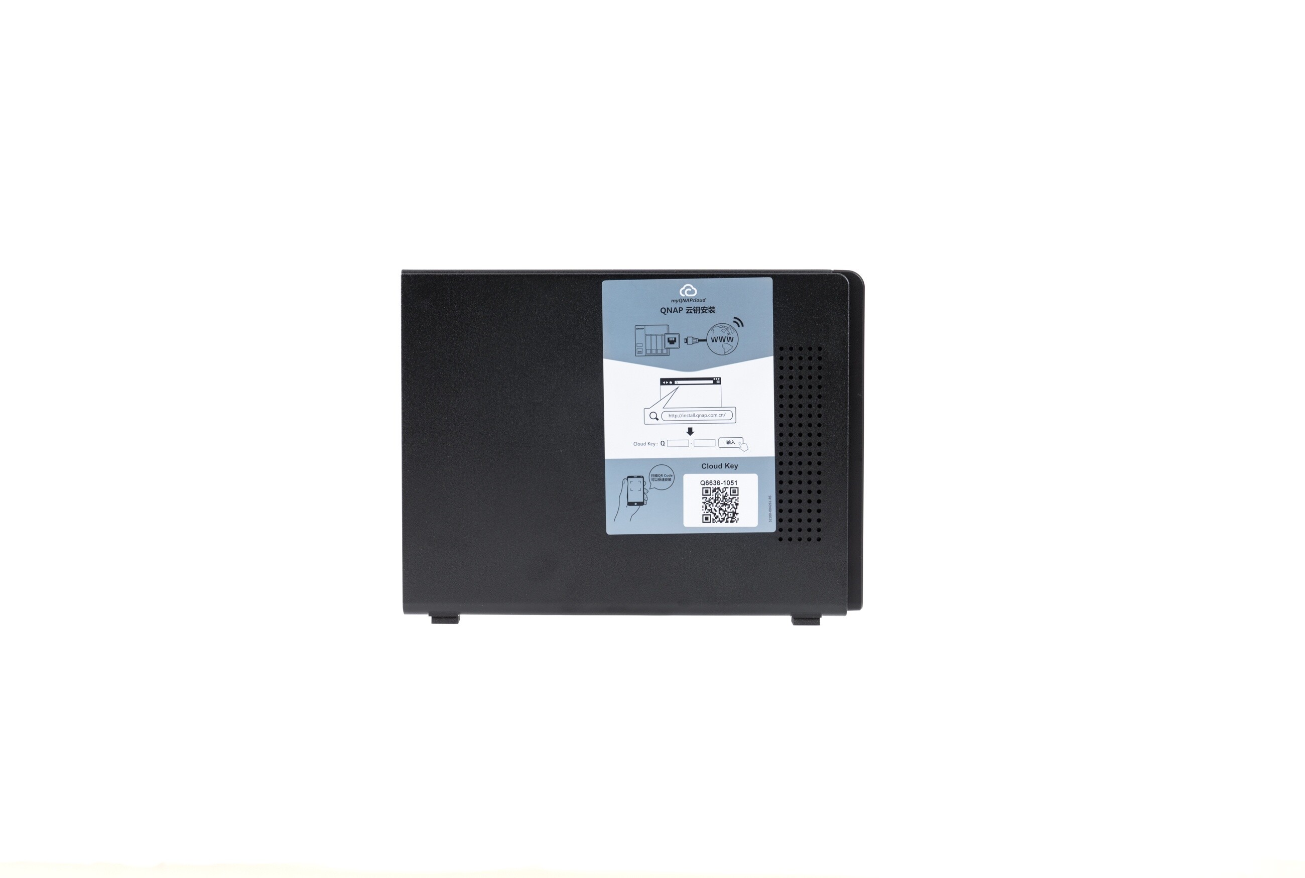 ▲硬盘槽上使用随机附赠的钥匙可以进行锁止 ▲侧面贴有云钥安装教程并留有小孔,有利于散热 1. 14cm风扇2. Kensington安全锁孔