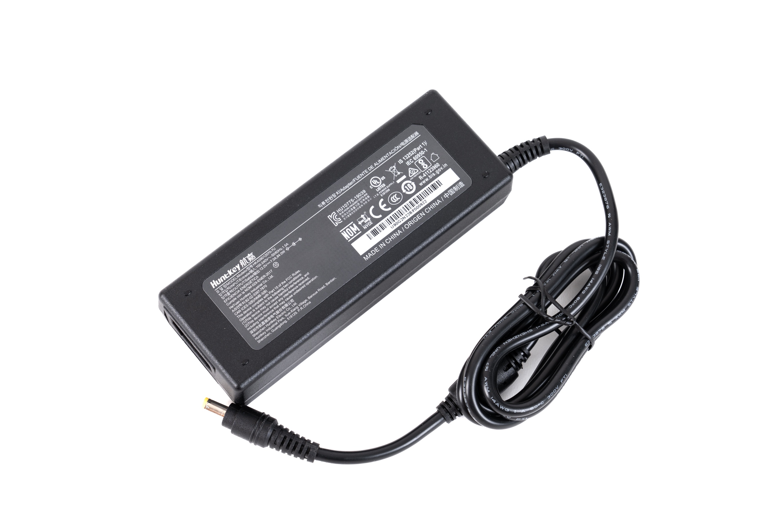 ▲TS-464C2采用黑白配色,正面印刷了NAS的型号和特点 ▲包装盒内有NAS一台,附件盒一个,电源线一根 ▲2.5寸硬盘十字螺丝16颗、M.2 SSD十字螺丝2颗、M.2 SSD散热片两块、3.5寸硬盘十字螺丝16颗、电源适配器一个、硬盘槽钥匙2个、网线1根 ▲电源适配器为航嘉制造,输出规格为12V 7A,功率84W 1. 电源按钮2. 复制按钮
