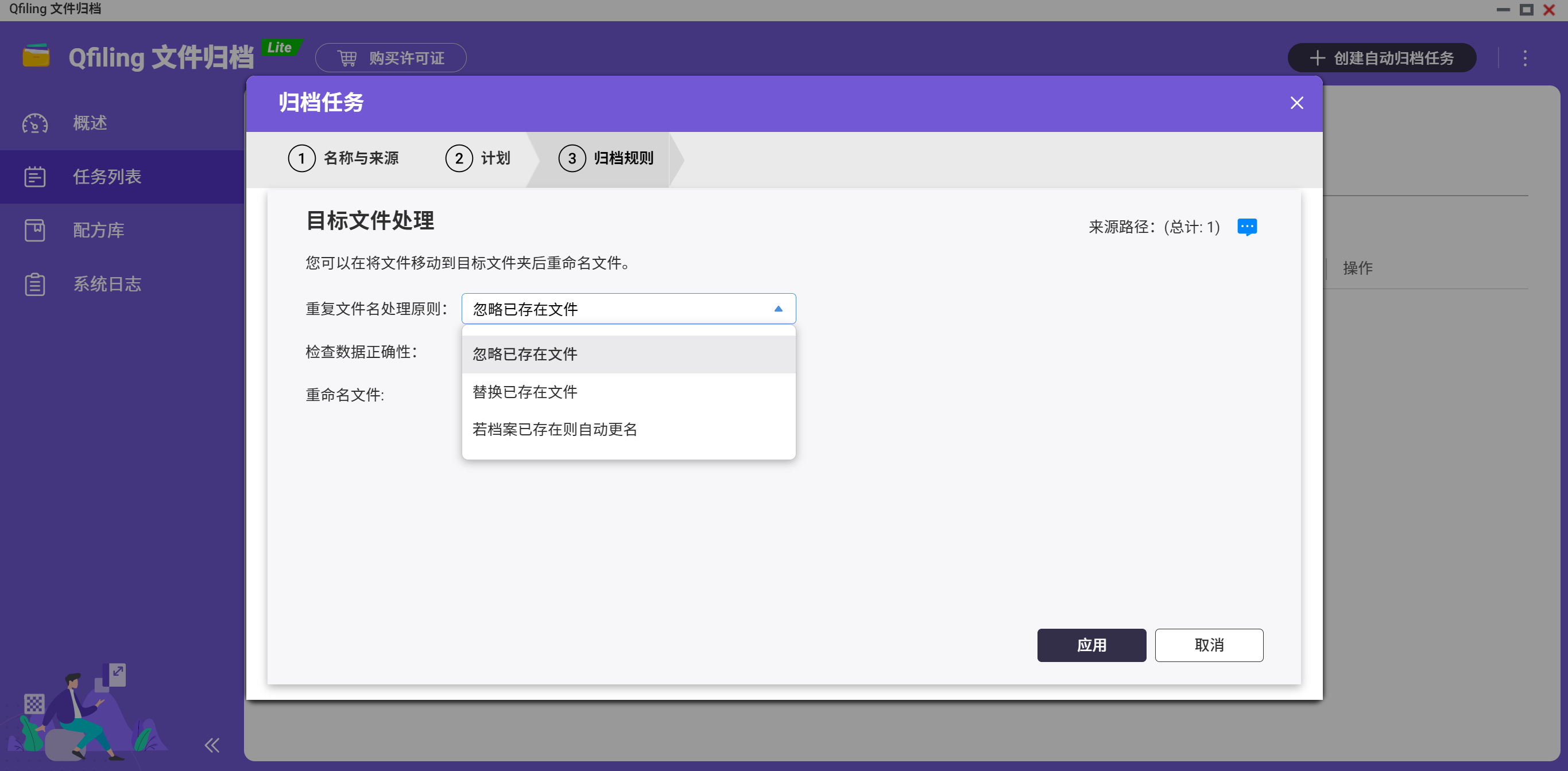 实时任务:Qfiling 自动侦测,一旦源数据夹中出现新文件,便立即将新文件存档
