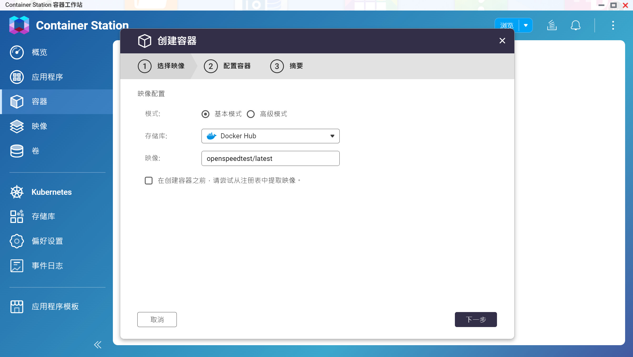 ▲首先安装Container Station ▲创建容器,映像中填入openspeedtest/latest,点击下一步 ▲端口填好,如图所示 ▲正常运行 ▲此时输入NAS IP:3000就能进入Open Speedtest测速服务器了,对于我这种经常测试路由器的爱好者而言非常有用解码测试