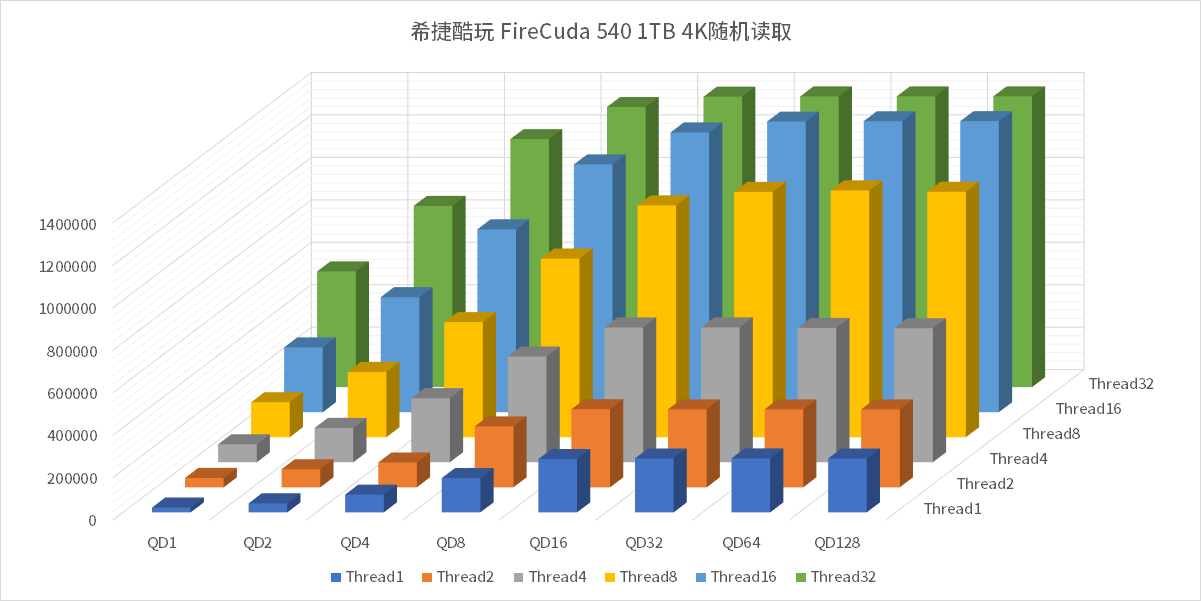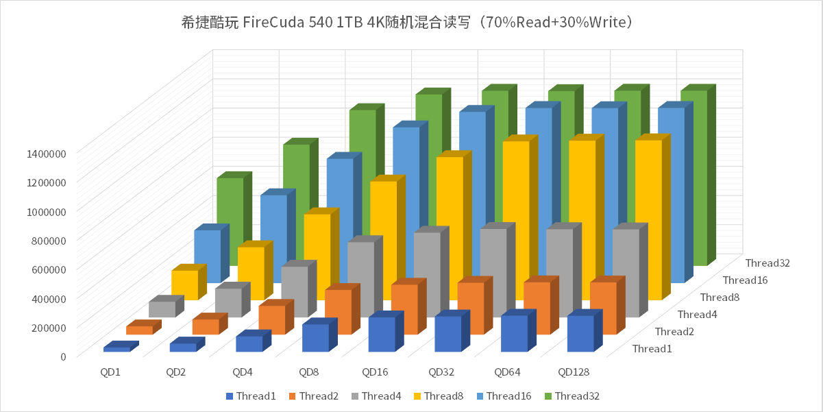 CrystalDiskMark的Q32T16高队列的读取、写入、混合读写均能超过百万IOPS,那么酷玩540 1TB的最高性能只有这样吗?我们使用IOMETER再冲击一下峰值性能: