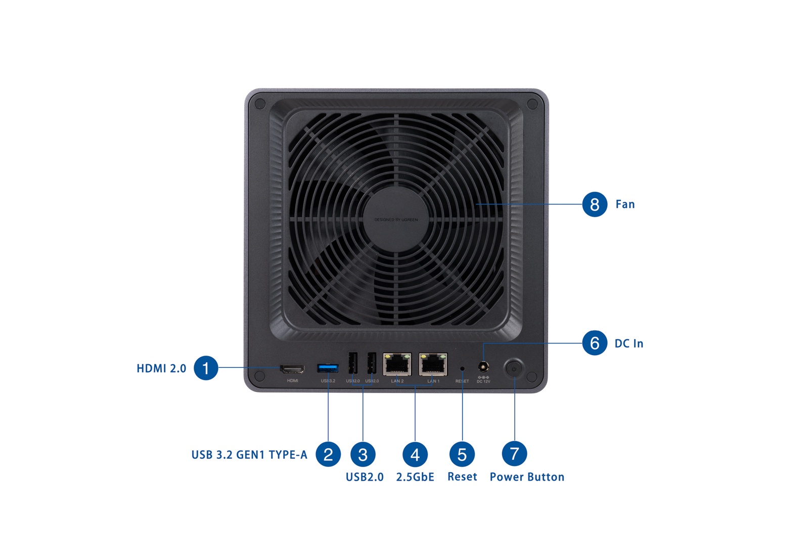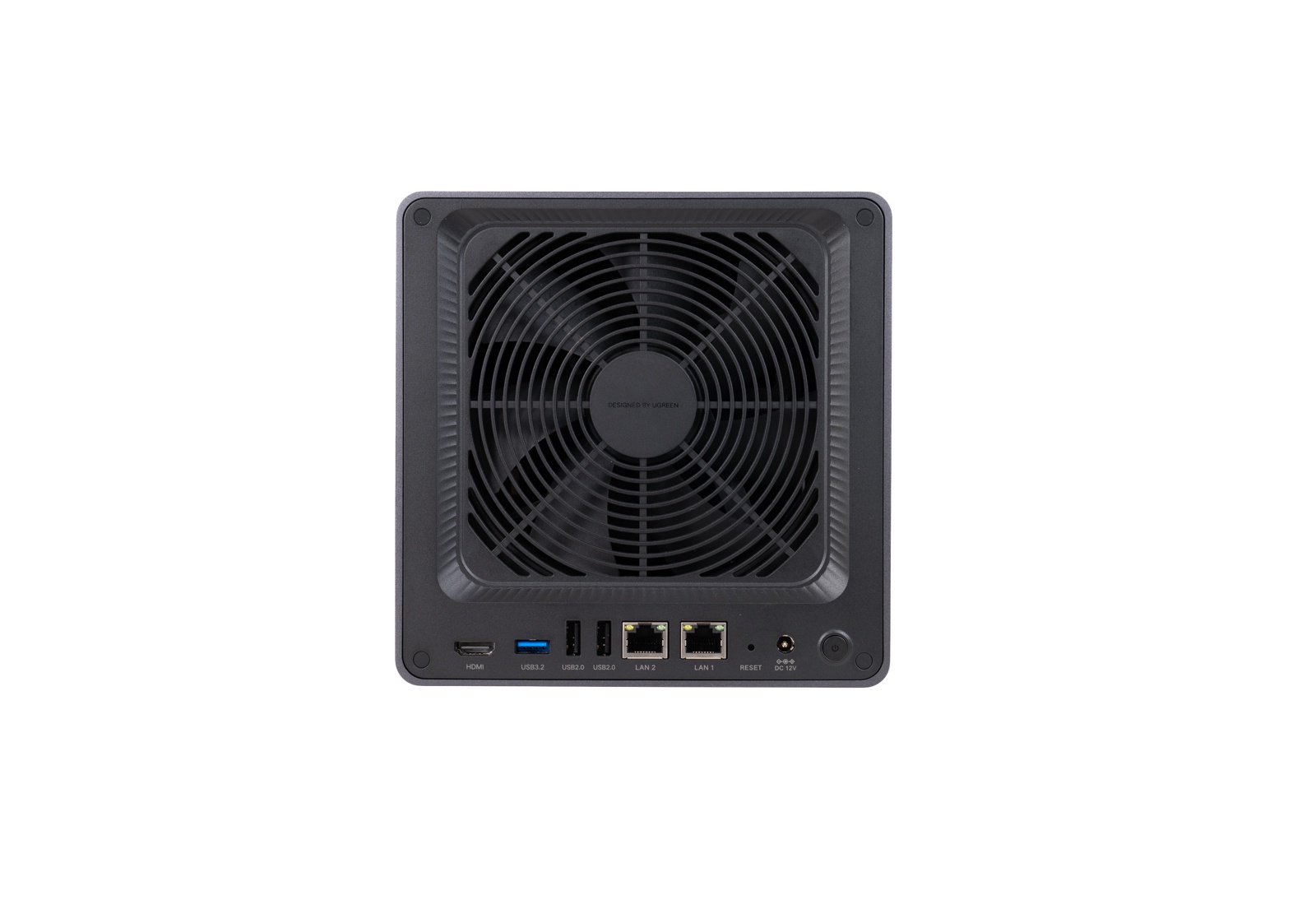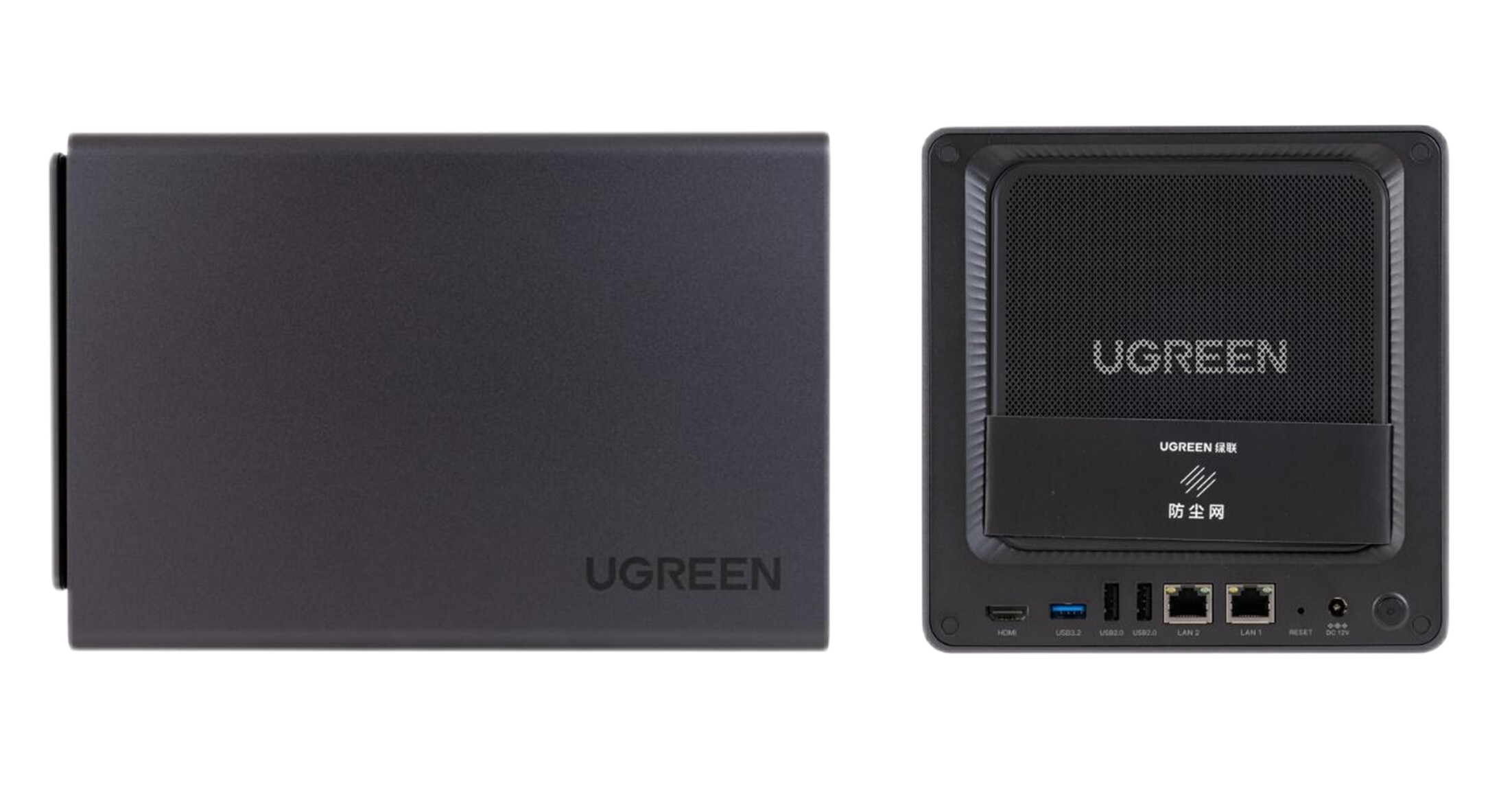 ▲机身采用一体成型的3.5mm铝合金,阳极氧化工艺。侧面印有UGREEN的Logo。背面风扇出风口有一张磁吸式的防尘网,贴心的中文提示,细节感满满。