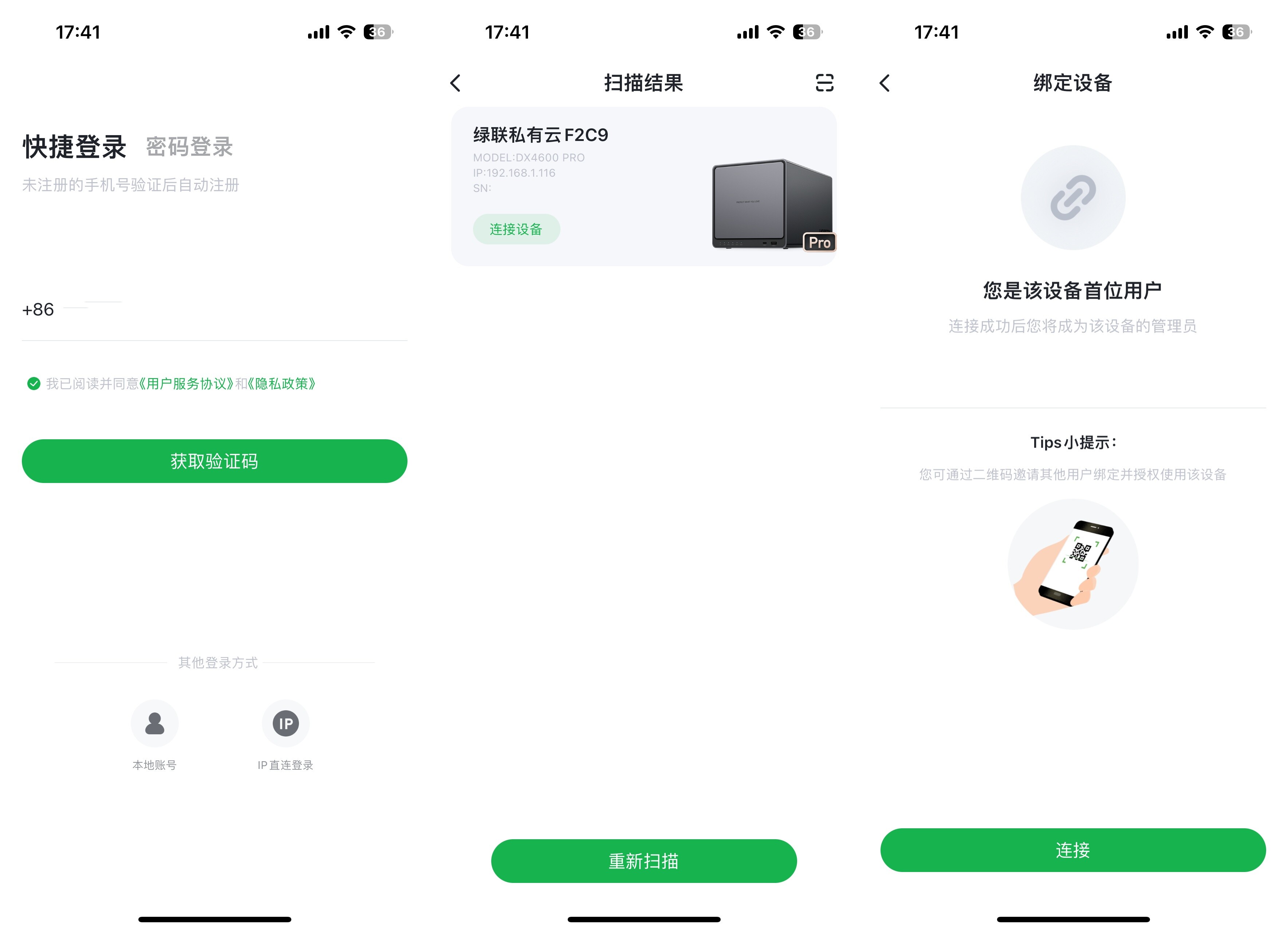 ▲初次使用绿联私有云连接NAS时需要注册用户来绑定NAS