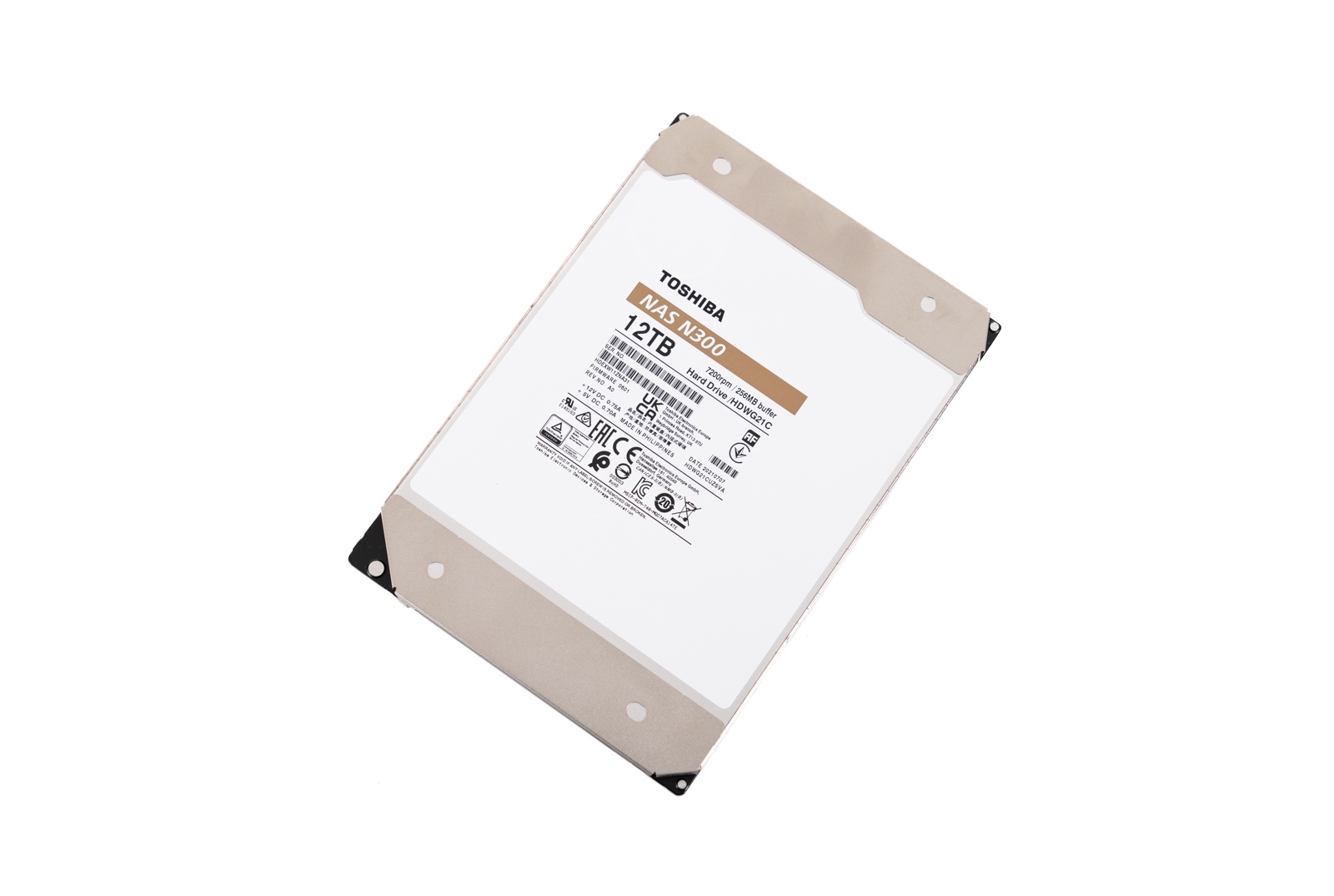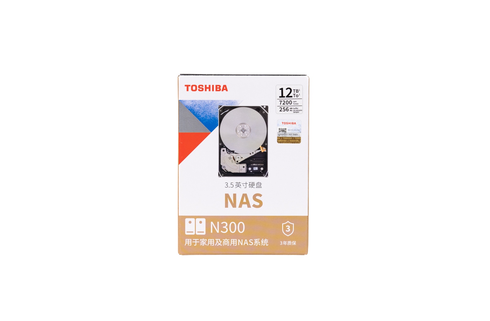 ▲东芝N300 12TB正面一览,采用CMR技术,氦气密封,专为7×24小时不间断运行设计