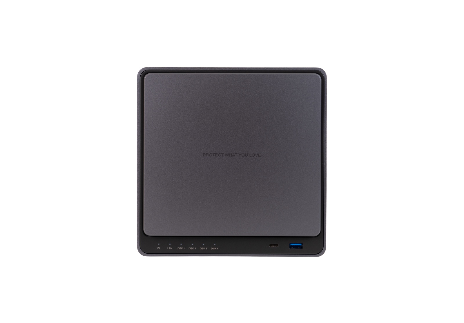 ▲DX4600 Pro正面是一块磁吸挡板。下端左侧是IO接口指示灯,右侧留有一个USB3.2 Gen2 Type-C接口,一个USB3.2 Gen2 Type-A接口
