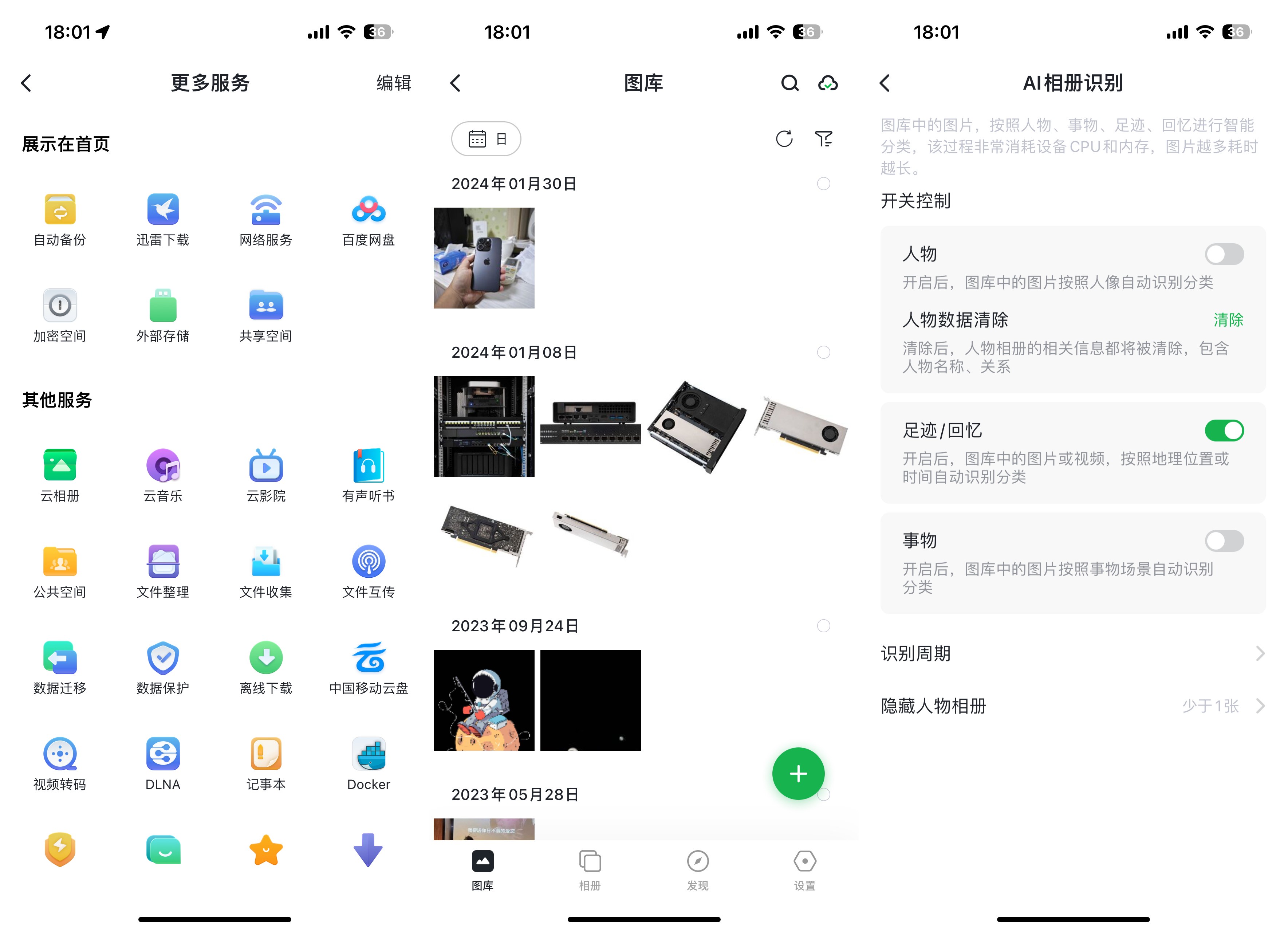 ▲在云相册中可以查看备份到NAS的图片,支持使用AI识别分类