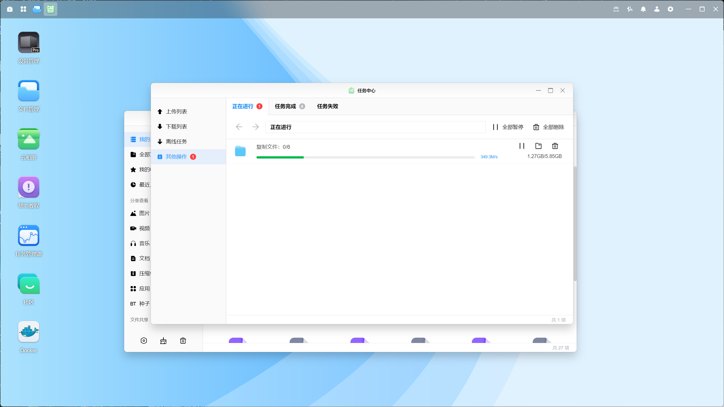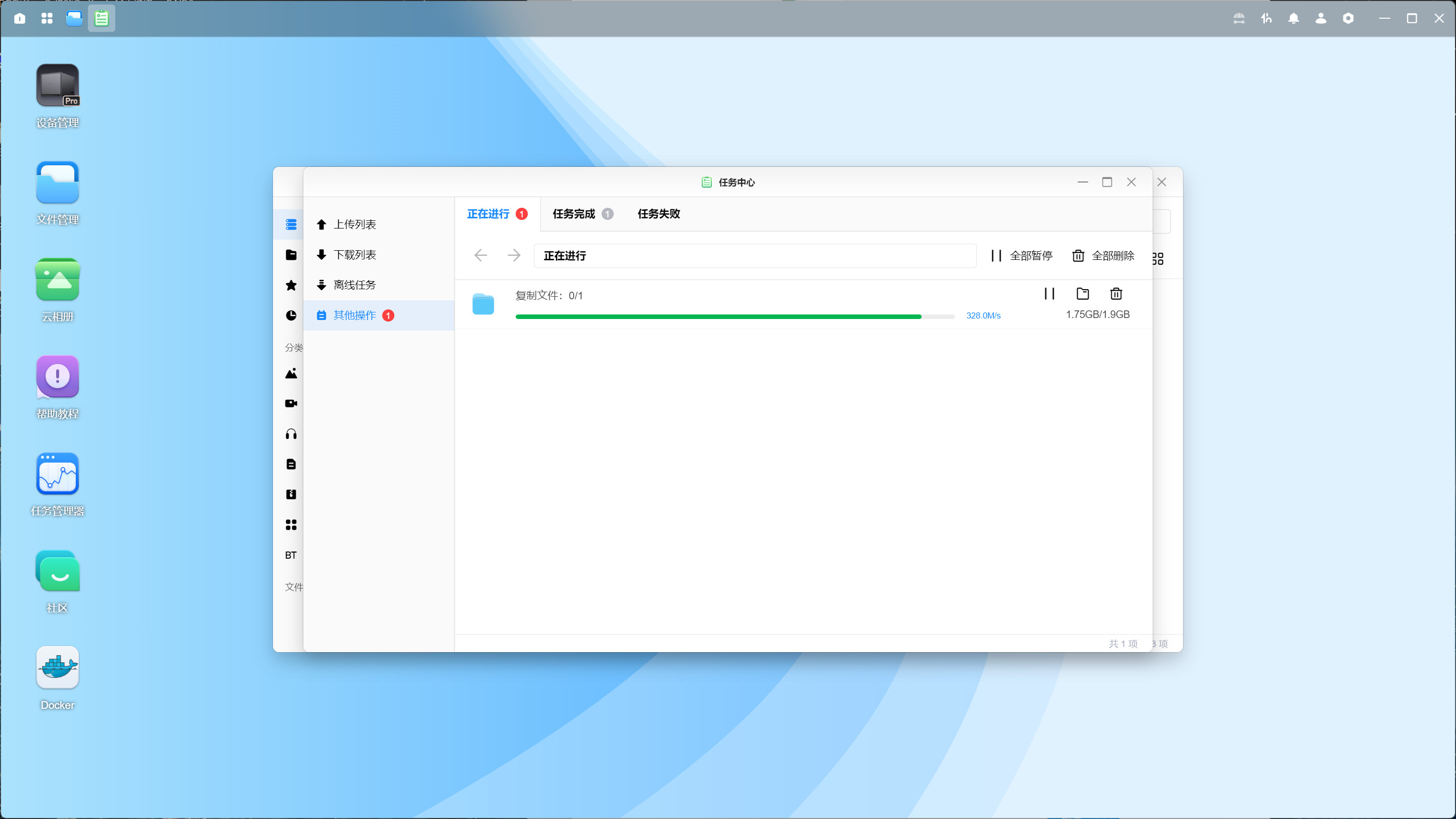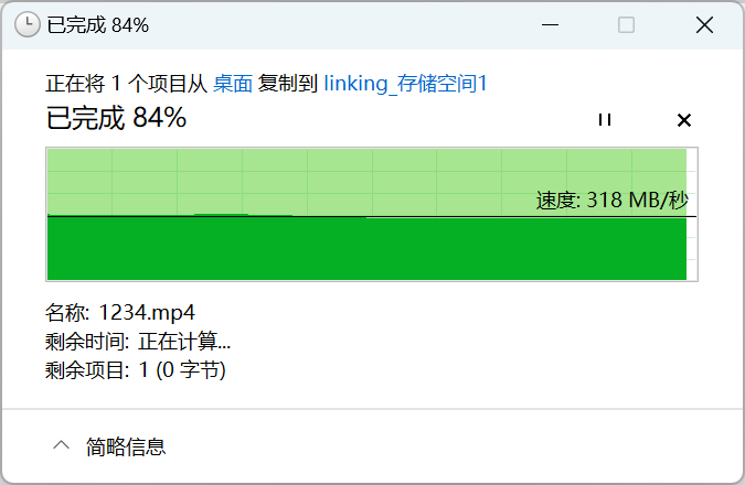 ▲从NAS向SD卡中写入文件,写入速率在328MB/s