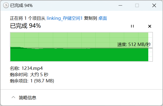 ▲启用SMB多通道后,从NAS中取回文档,此时DX4600 Pro的读取速度为512MB/s
