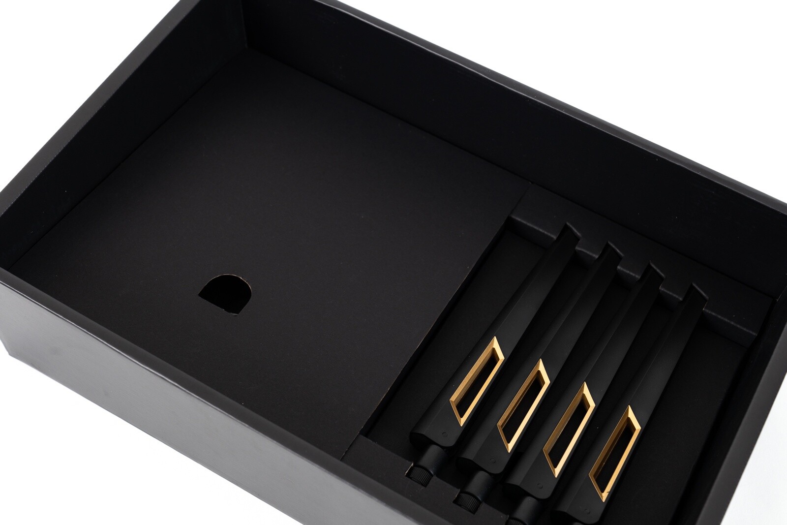 4.设计美观大气:黑金配色、内嵌金属散热片,散热性能良好,整体质感出众
