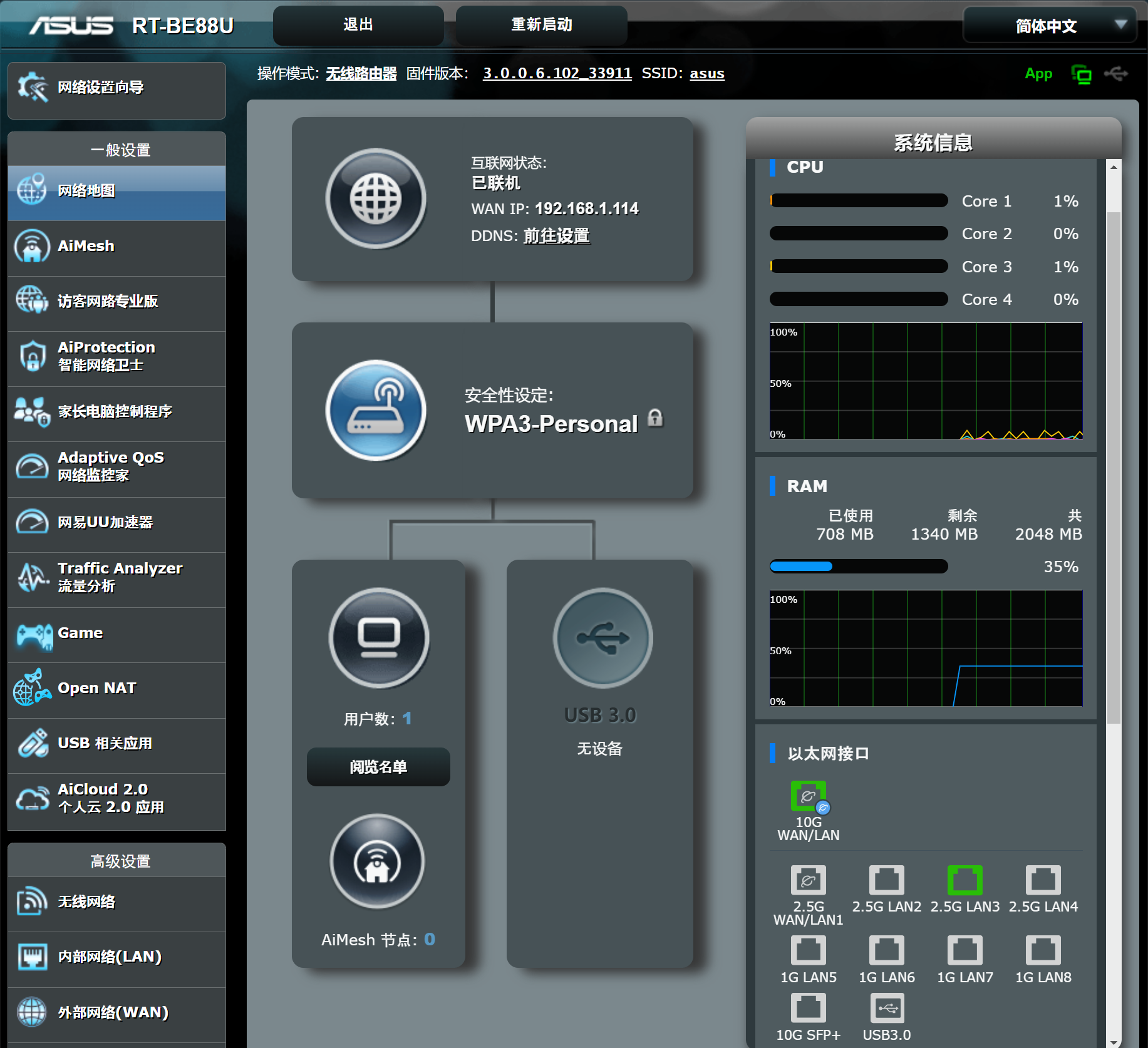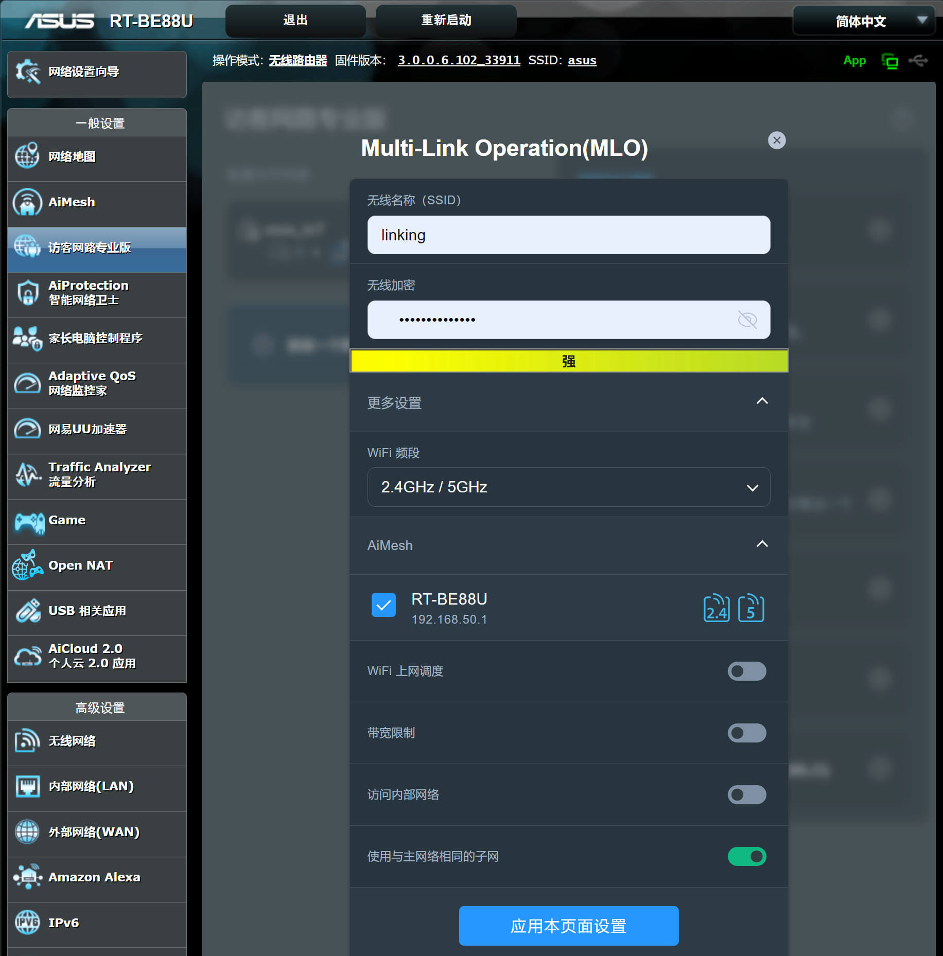 5.软件功能丰富:支持访客网络、Aimesh等实用功能,满足家庭网络拓展和管理需求