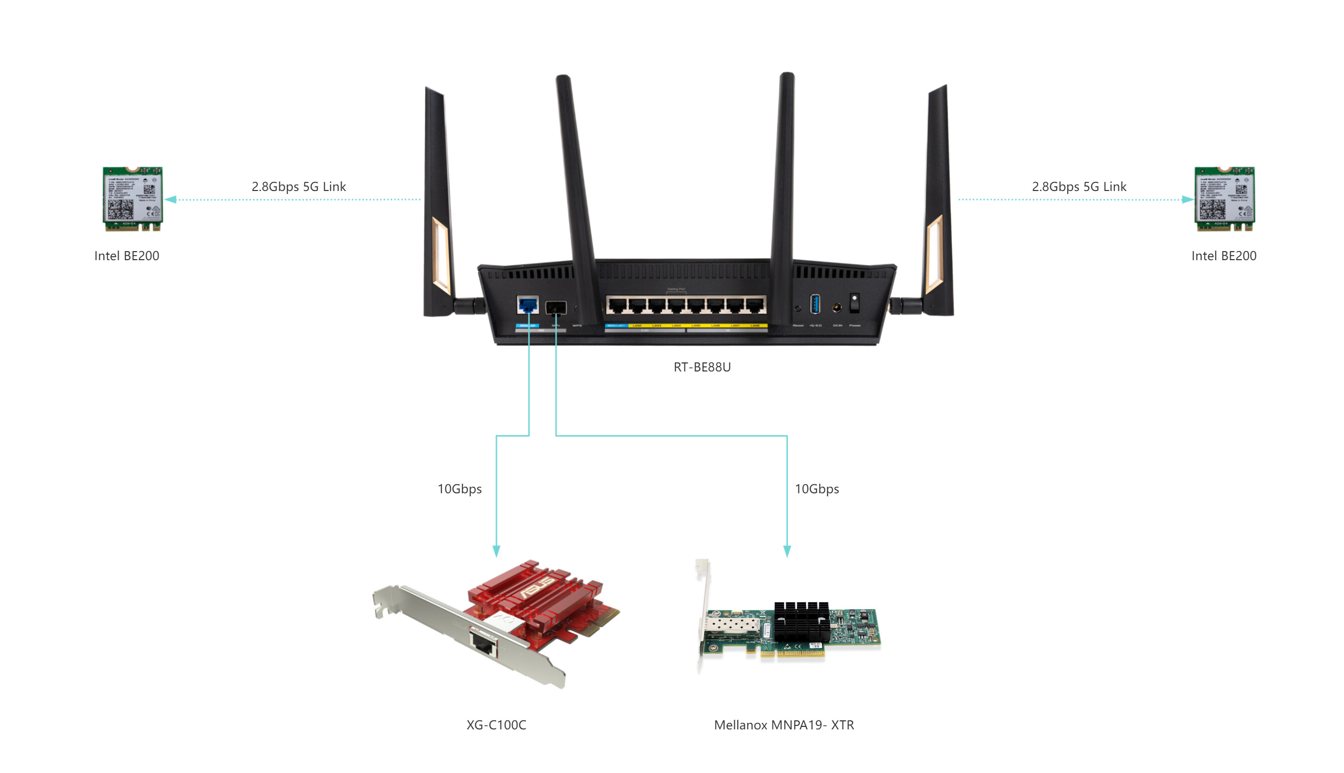 PC1 网卡:ASUS XG-C100C,Intel BE200