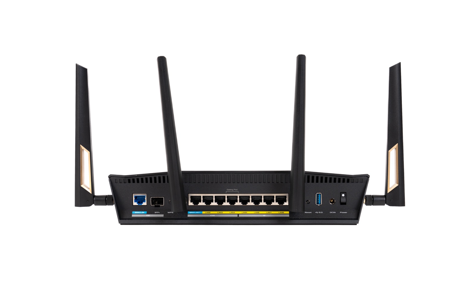 ▲RT-BE88U支持Wi-Fi 7标准,理论速率高达7.2Gbps。它采用了4x4 MU-MIMO、OFDMA 、RangeBoost+技术,可以大幅提升无线网络的覆盖范围和吞吐能力。此外它还支持智能组网、双频智能切换等功能,为用户提供更加智能和稳定的无线网络体验开箱