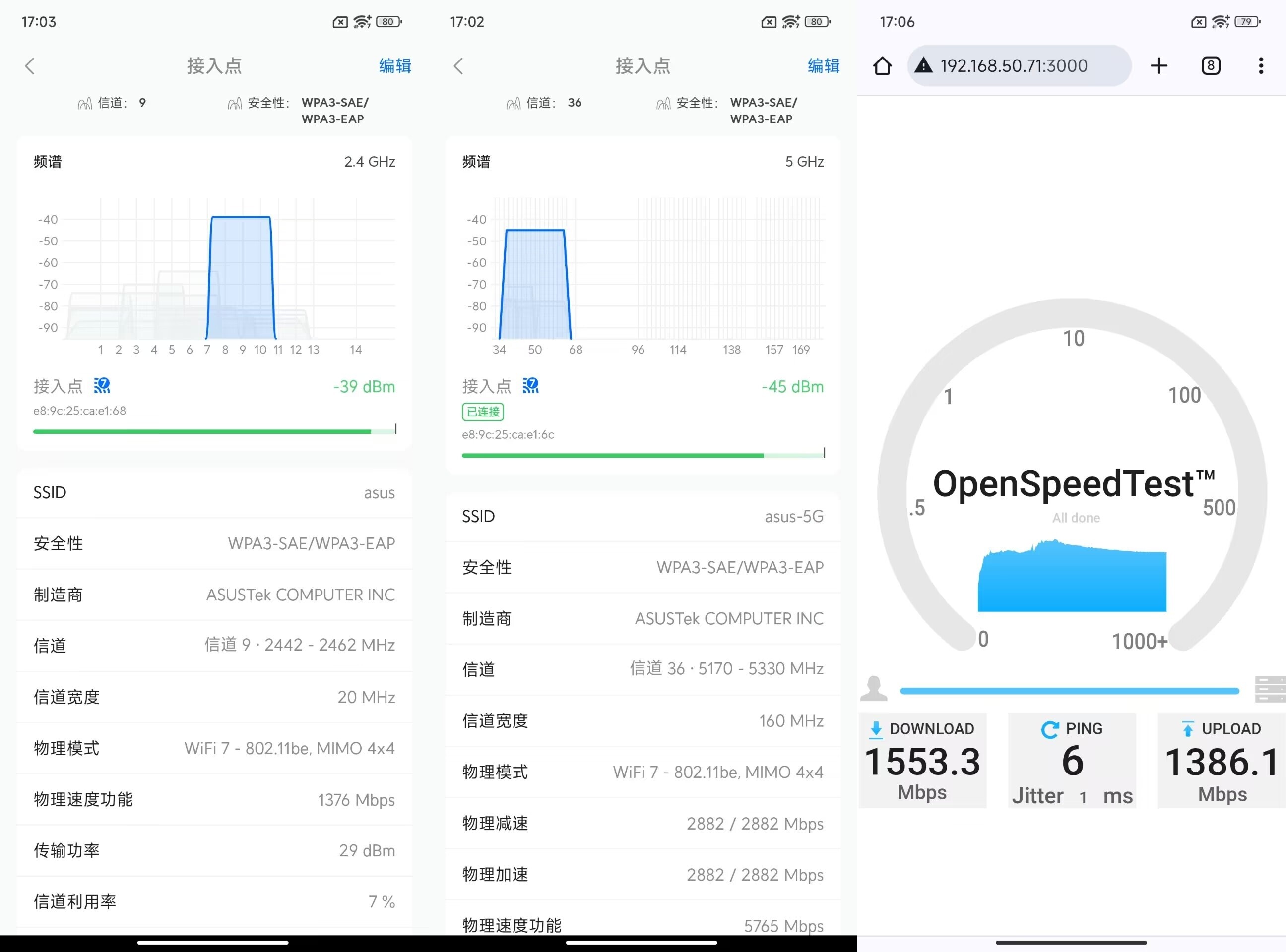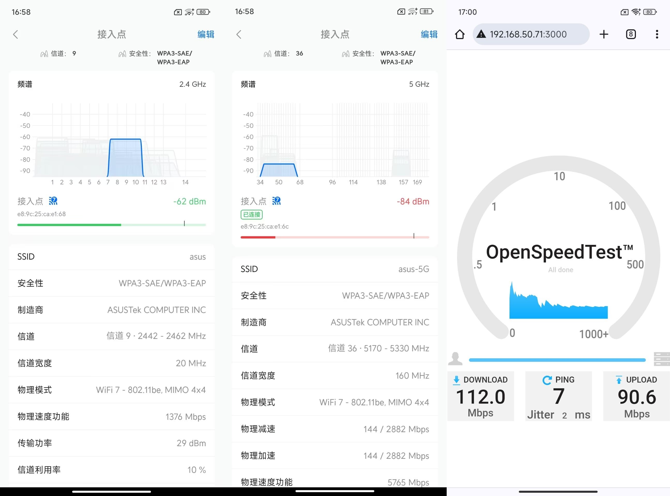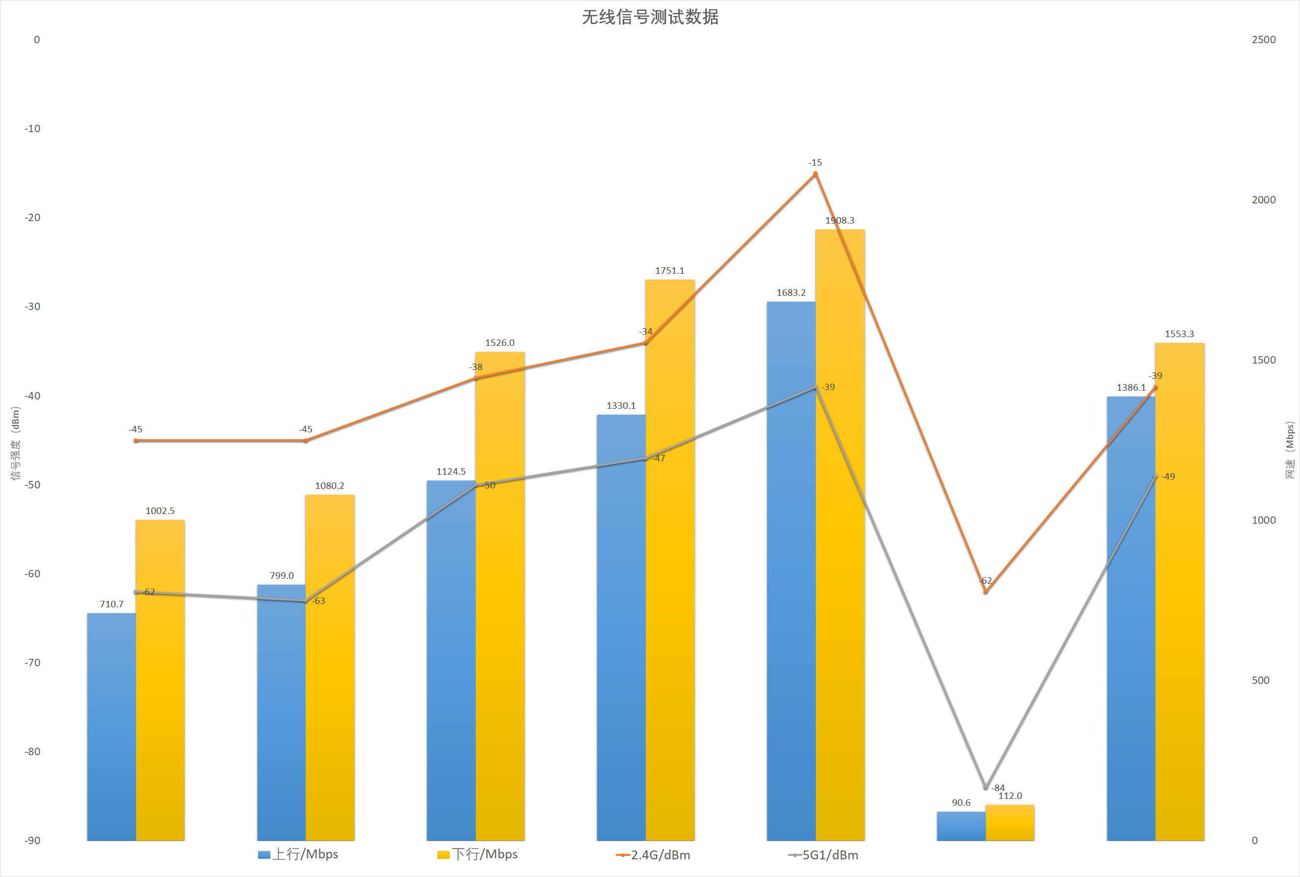 G:7.5平方米 ▲1号位置处2.4G、5G信号强度以及Speedtest测试 ▲2号位置处2.4G、5G信号强度以及Speedtest测试 ▲3号位置处2.4G、5G信号强度以及Speedtest测试 ▲4号位置处2.4G、5G信号强度以及Speedtest测试 ▲5号位置处2.4G、5G信号强度以及Speedtest测试 ▲6号位置处2.4G、5G信号强度以及Speedtest测试 ▲7号位置处2.4G、5G信号强度以及Speedtest测试 ▲数据汇总 ▲图表汇总