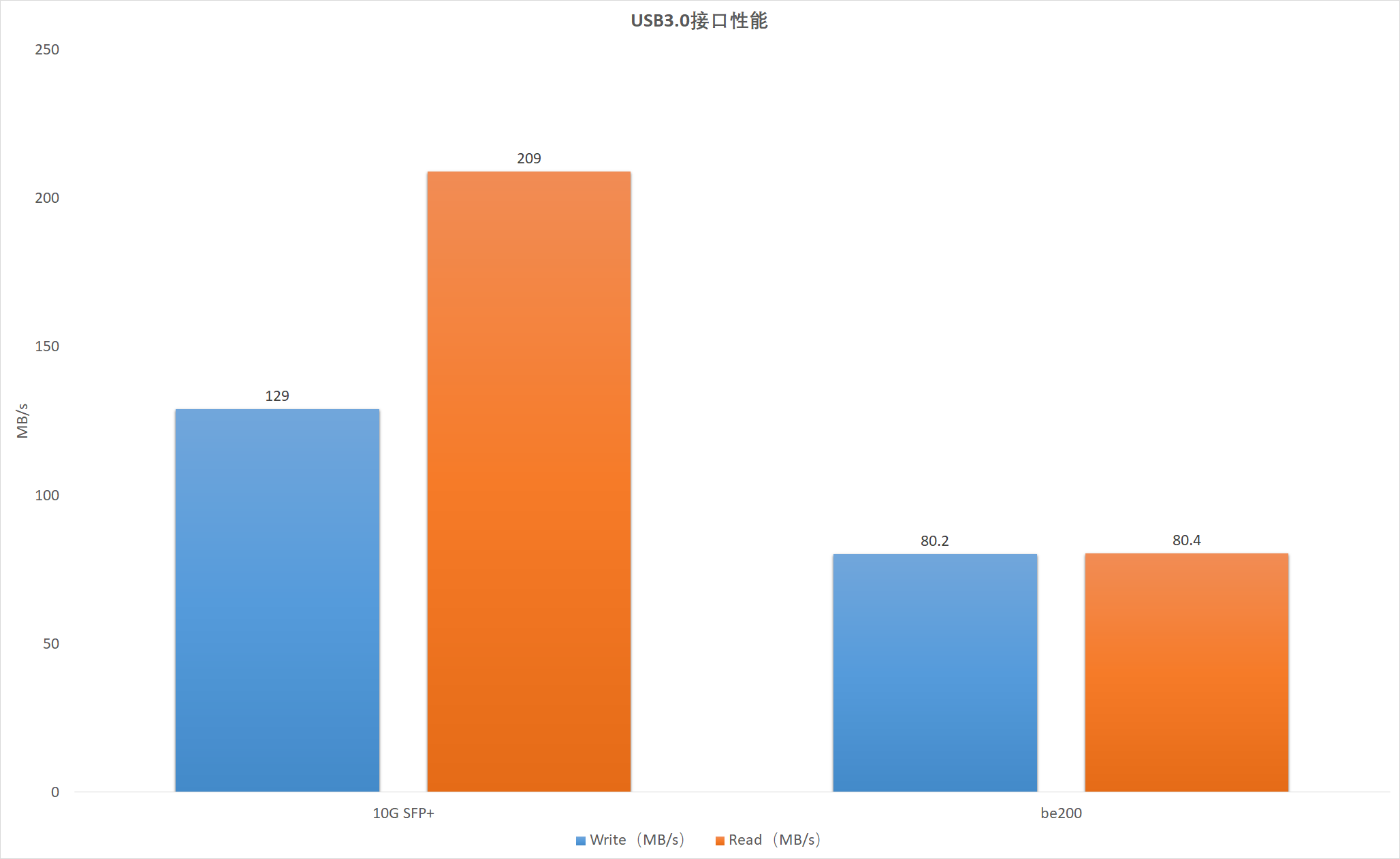 ▲5G to LAN上行单线程和十线程 ▲5G to LAN双向单线程和十线程 ▲5G to LAN下行单线程和十线程 ▲5G to 5G单向单线程和十线程 ▲5G to 5G双向单线程和十线程 ▲数据汇总 ▲图表汇总USB3.0接口性能测试