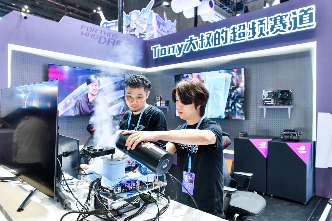 超频是追求极限,突破自我的“玩机”精神。此次“Tony大叔的超频赛道”在常规液氮超频挑战外,新增了10GHz+内存超频挑战。现场玩家在工作人员指导下,成功将CPU超至8.2GHz以上,或将内存超频到10GHz以上,即可赢取ROG限量钥匙扣或ROG官方认证徽章。其中,每日CPU超频挑战成绩TOP3的玩家还能分别赢得华硕Z790-AYW OC WIFI主板、ROG游侠2 NX键盘、ROG影刃3无线鼠标,心动的玩家快来感受突破极限的成就感!