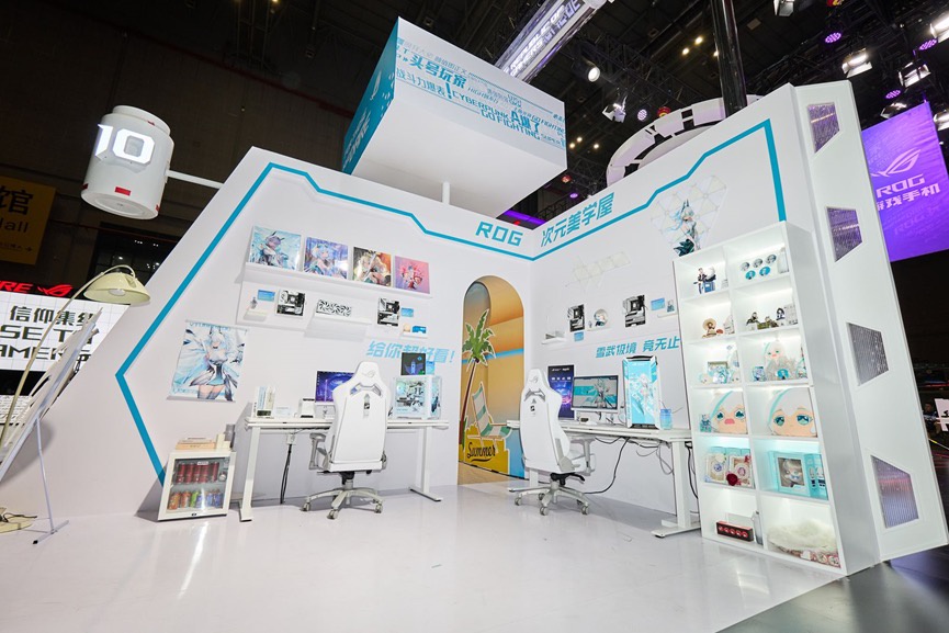 接下来就是此次ROG星舰拥有超高颜值的展区——“ROG次元美学屋”。在7月12日下午和7月13日下午,此区将由@天才赵德柱和@视角姬与大家近距离互动,参与即可获得1个集邮印章和额外徽章奖励,吸引了众多玩家,可谓十分火热。