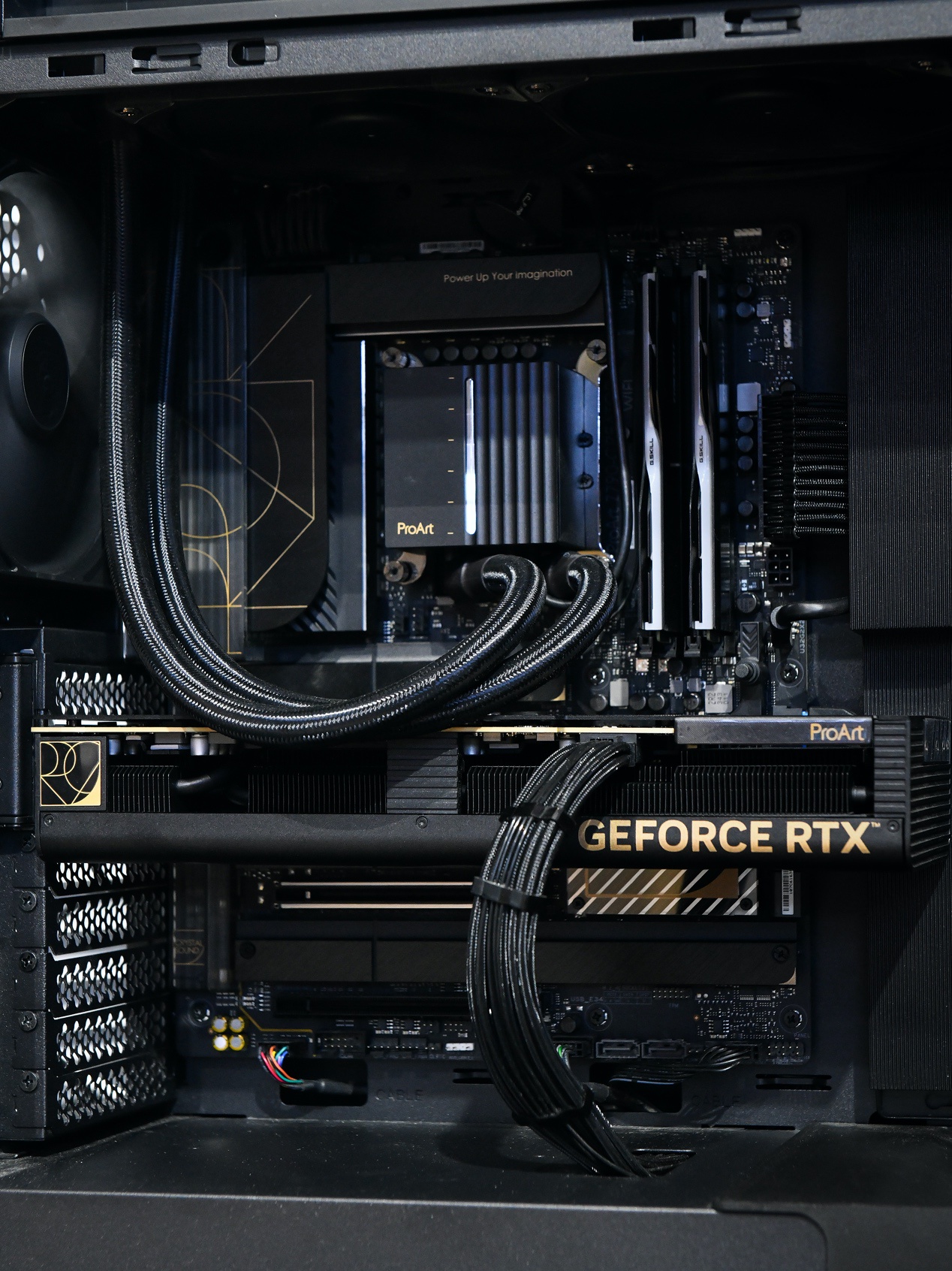 此处ProArt全家桶主机基于ProArt Z790-CREATOR WIFI创艺主板打造,高规格供电设计加上面面俱到的超大散热装甲,足以应对3D动画、视频渲染和软件编译等高负载多线程任务。板载4个PCIe 4.0 M.2接口和2个40Gbps的雷电4接口,前置USB 3.2 Gen 2x2接口支持QC 4+ 60W快充,提供高速数据传输和大功率快速充电的需求。更配备万兆+2.5G双有线网卡,还支持WiFi 6E无线网卡,可实现更快的大型文件、高分辨率视频流和资源共享传输。支持华硕远程管理中心软件(ASUS Control Center Express)和CreationFirst创艺专注模式,软硬结合,提高用户工作效率,助你畅享自由,放肆才情!