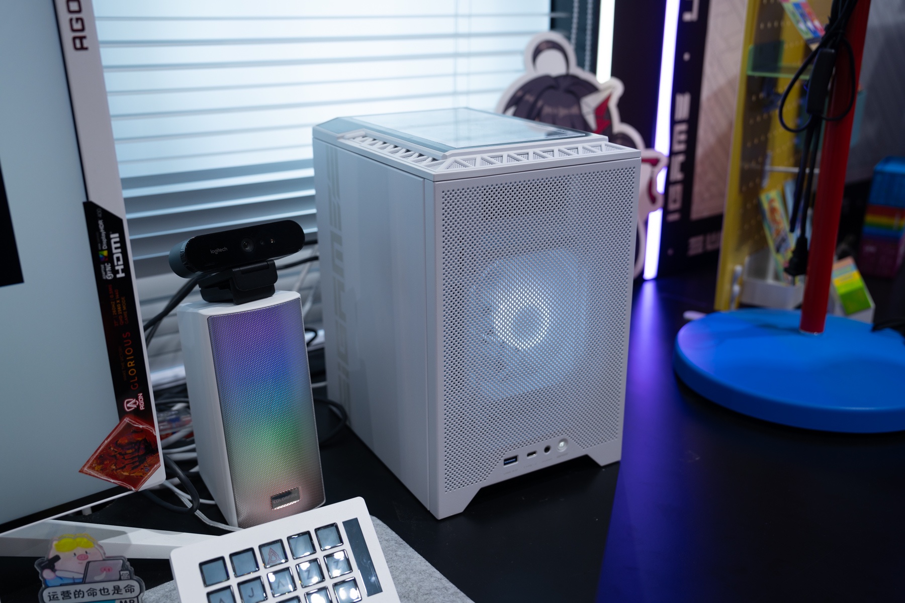 这台白色的立方体ITX主机也引起了我们的兴趣,毕竟现在显卡越做越大,ITX主机的生存空间逐渐变小,现在还能够看到这样精巧的设计并不容易了