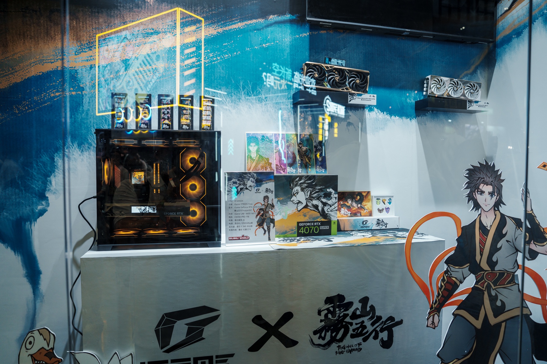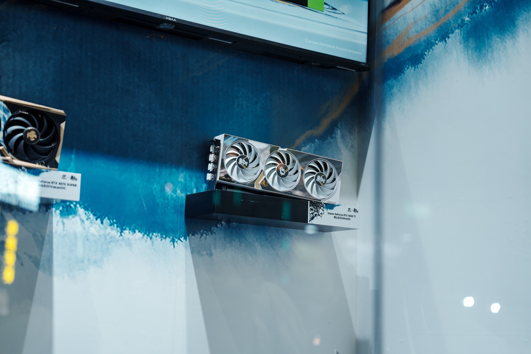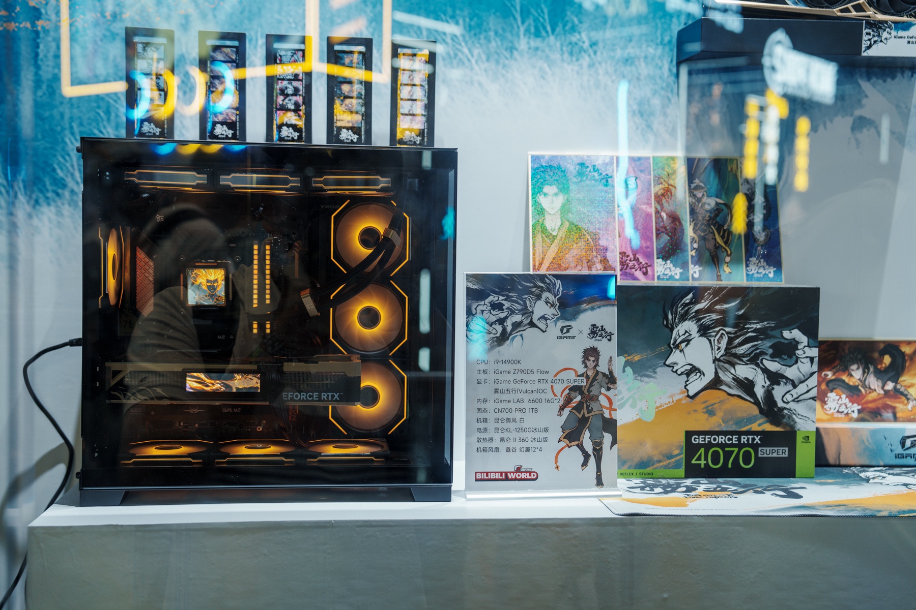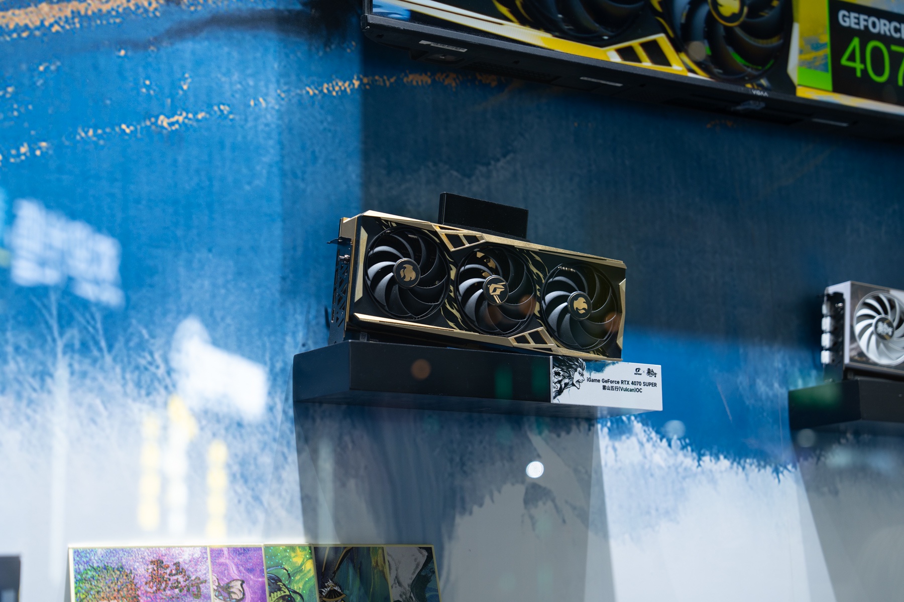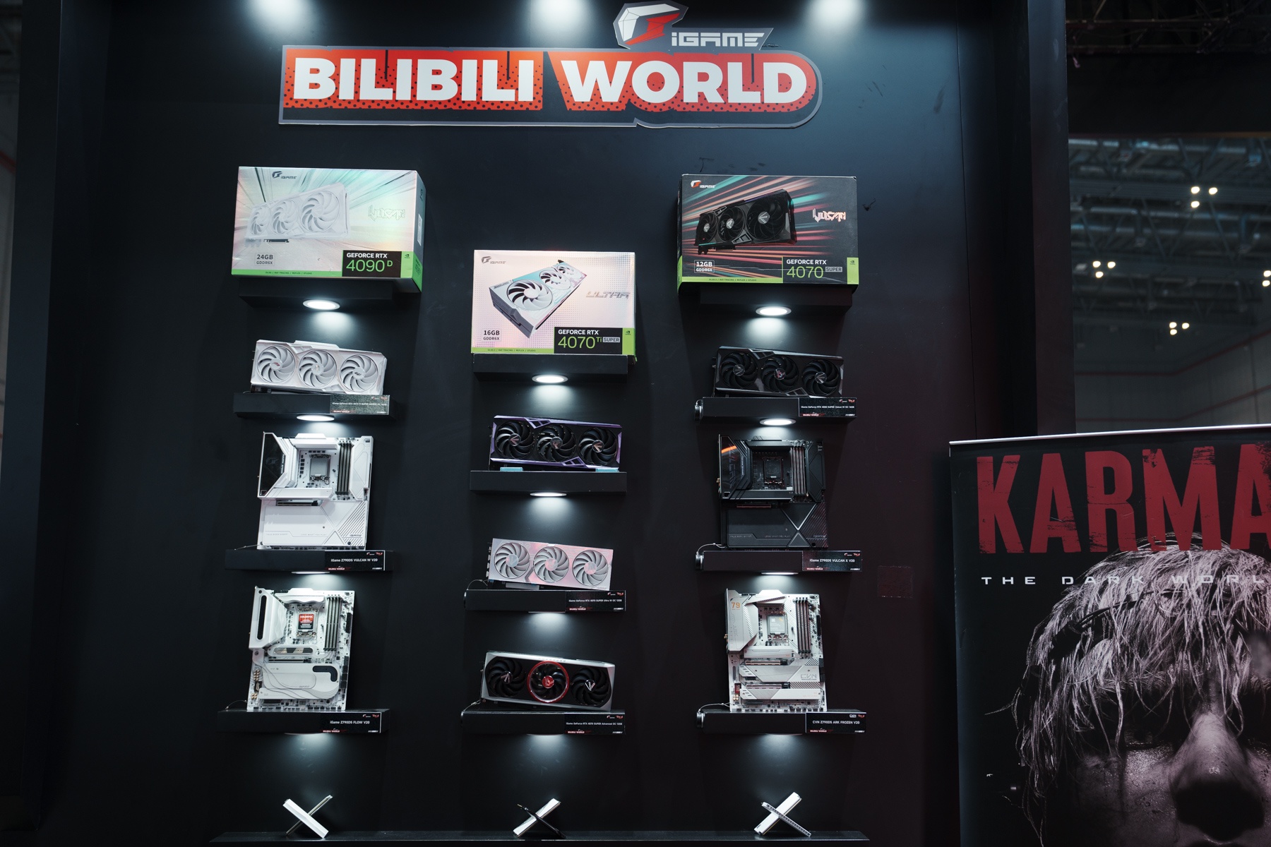 进入展区后的,首先映入眼帘的便是这iGame面板卡墙。作为目前AIPC的核心组件,显卡和主板也是七彩虹的拿手好戏,Ultra、Advanced、Vulcan,多种级别产品为不同玩家体验AIPC提供了坚实基础