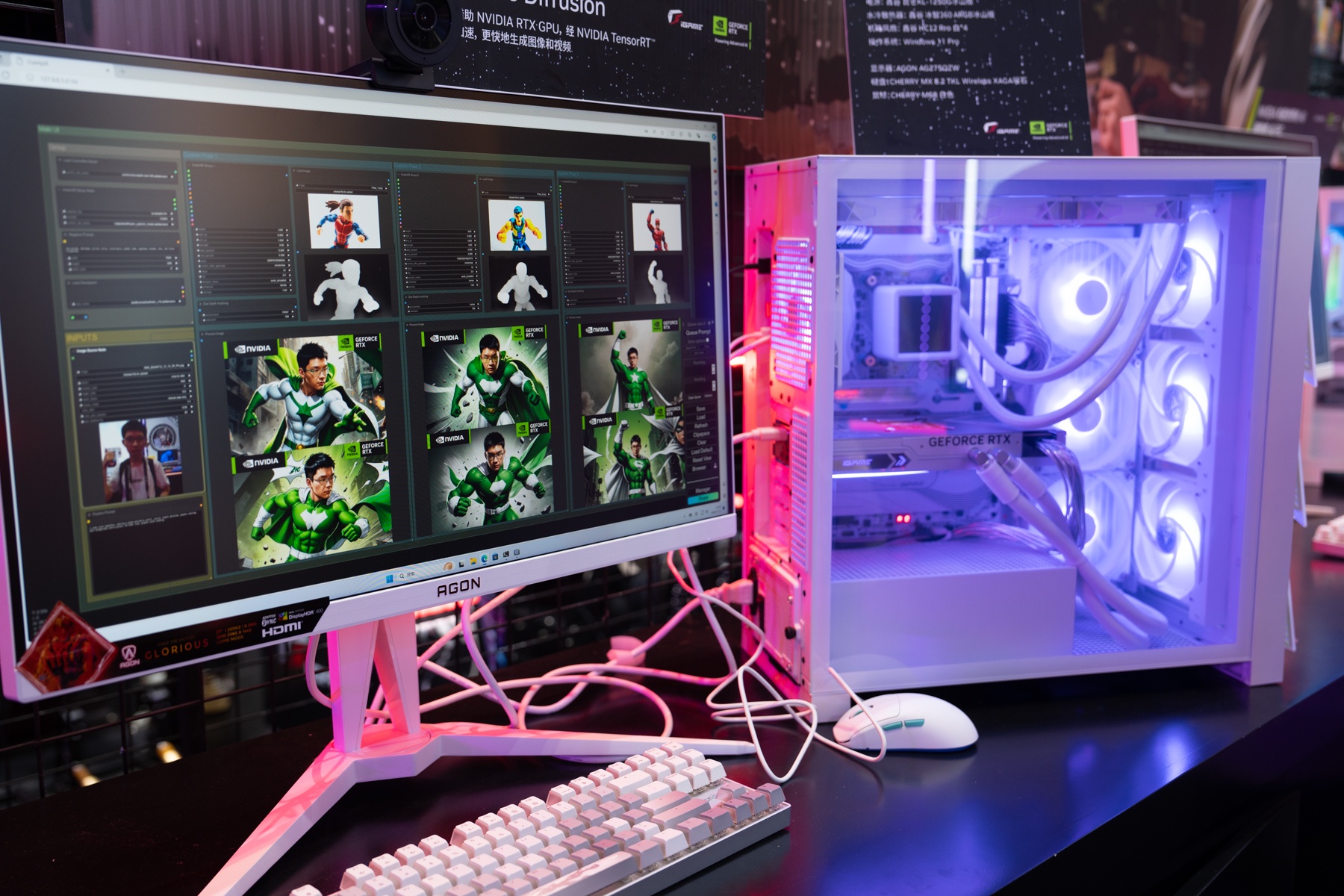 在AIGC体验区当中,游客将能亲身体验由TensorRT加速的Stable Diffusion ComfyUI。与我们所熟知的Web UI不同,ComfyUI进一步优化和加速了创作过程。并通过最新的iGame GeForce RTX 40 SUPER系列的旗舰显卡及家族产品,使得AI绘图变得更加简便快捷。