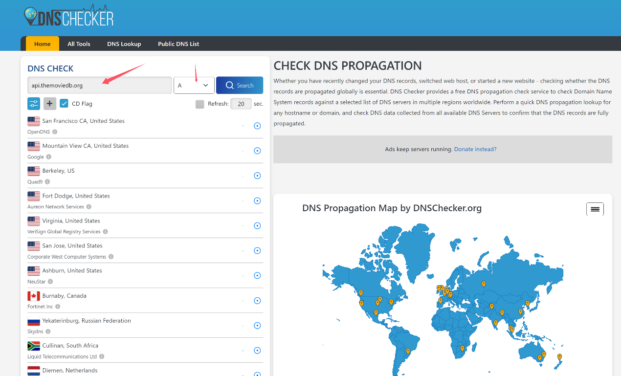 ▲生成后,就可以在API菜单中复制API密钥了,填写到第一张图的TMDB API KEY位置即可 ▲最后我们在【数据源】-【TMDB】配置中检测API密钥,弹出验证成功就可。如果验证失败的话,我们进行下一步 ▲中国大陆用户因TMDB API DNS污染,一般情况下无法直接连通,需配置系统HOST进行连接 ▲访问https://dnschecker.org/网站,输入域名 api.themoviedb.org 类型选A,点击Search ▲找到地址位于中国的项,将IP复制下来 ▲以IP api.themoviedb.org的格式填入HOST配置 ▲访问https://dnschecker.org/网站,输入域名 www.themoviedb.org 类型选A,点击Search ▲找到地址位于中国的项,将IP复制下来 ▲以IP www.themoviedb.org 的格式填入HOST配置。同理,将image.themoviedb.org域名的ip地址作为补充,填入到HOST配置应用即可 ▲这时就会发现已经可以刮削出影视海报墙了,主要信息来源于TMDB ▲影视资源的封面、海报、简介、演员信息都可以显示 ▲影视中心支持外挂字幕相册