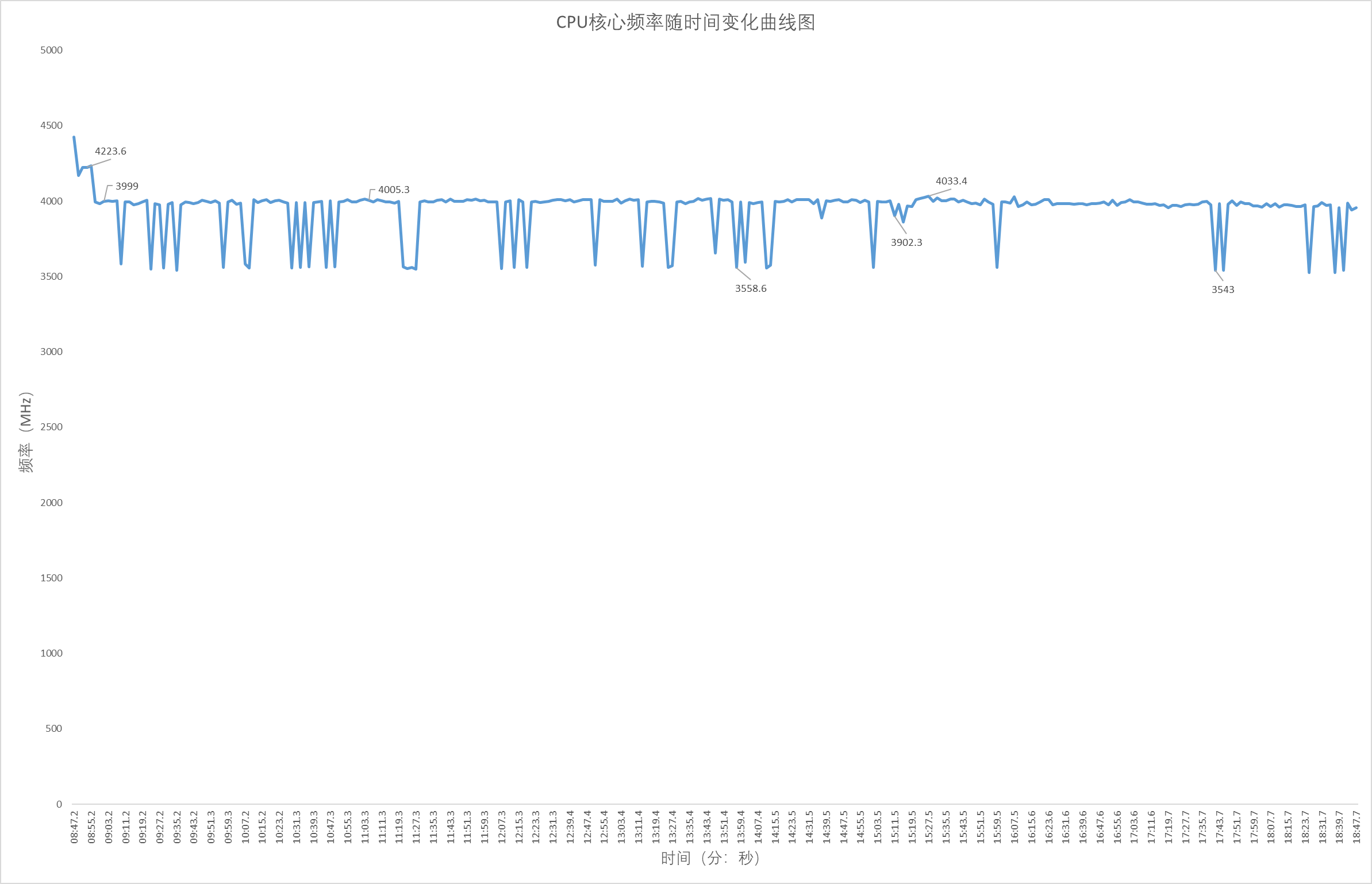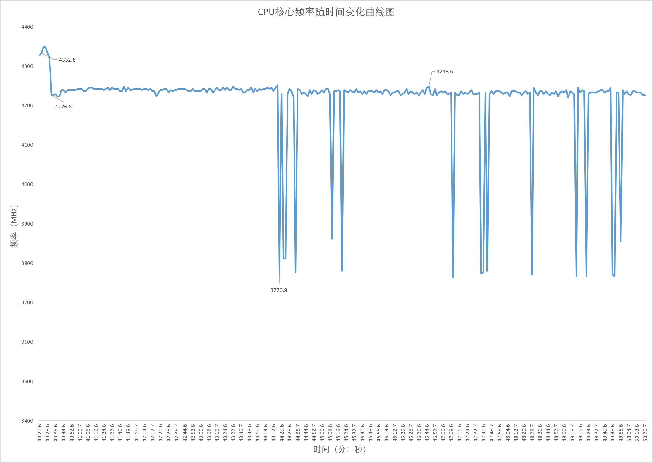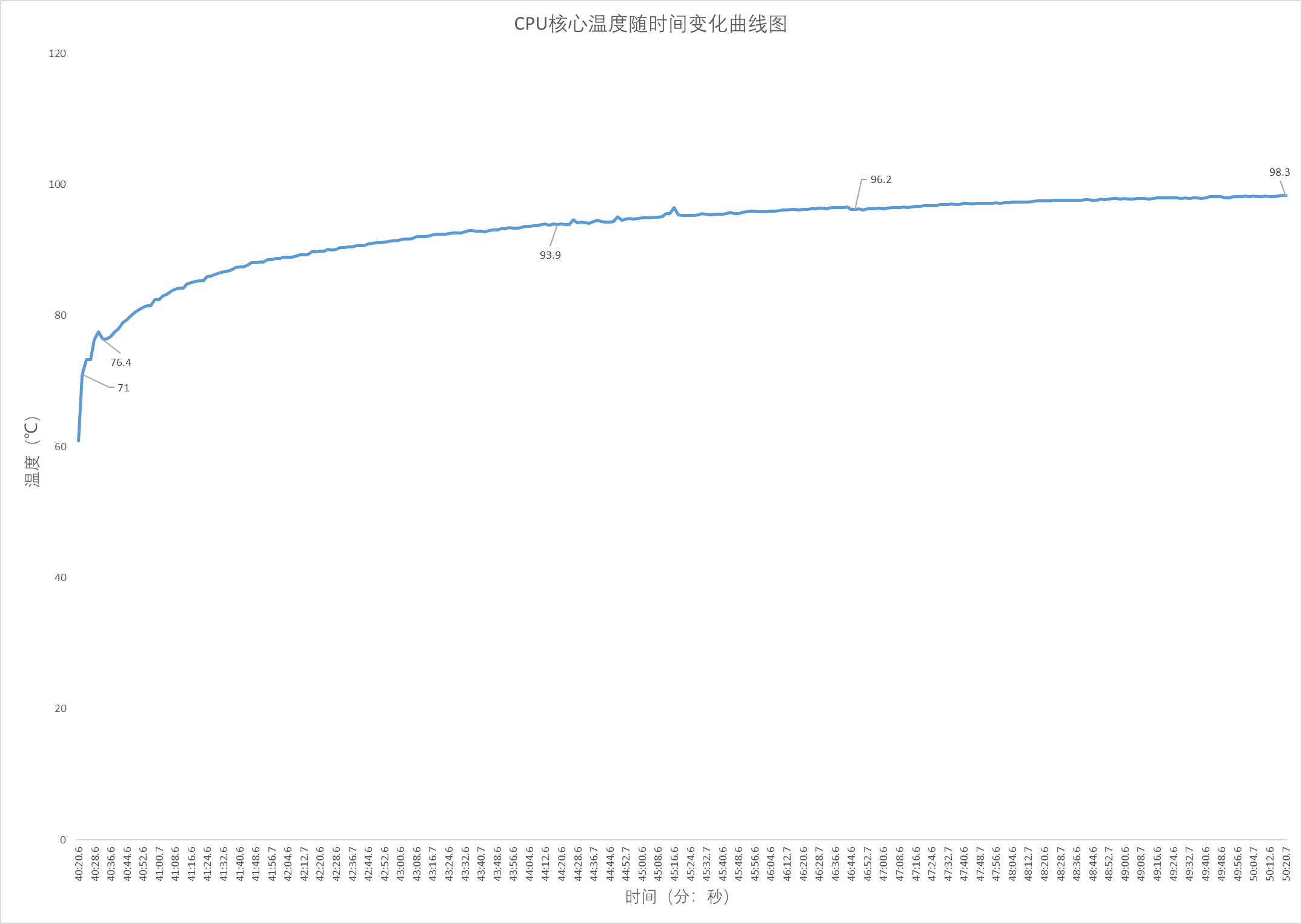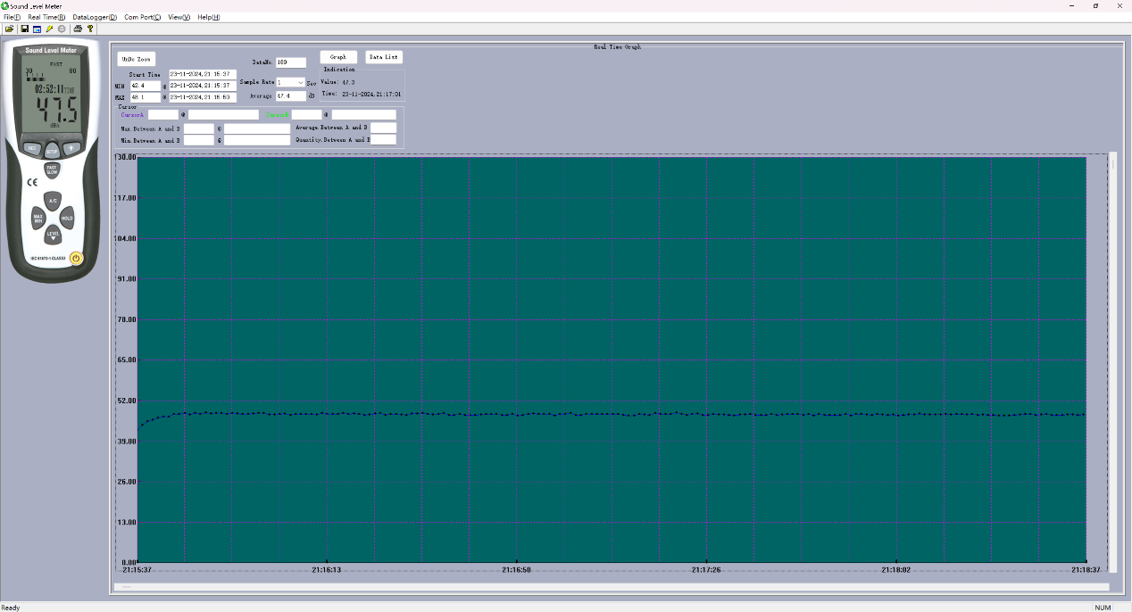 CPU Stress FPU进入Thermal Limit后,温度稳定,此时风扇转速趋于稳定,这里设定采集180秒内的噪音