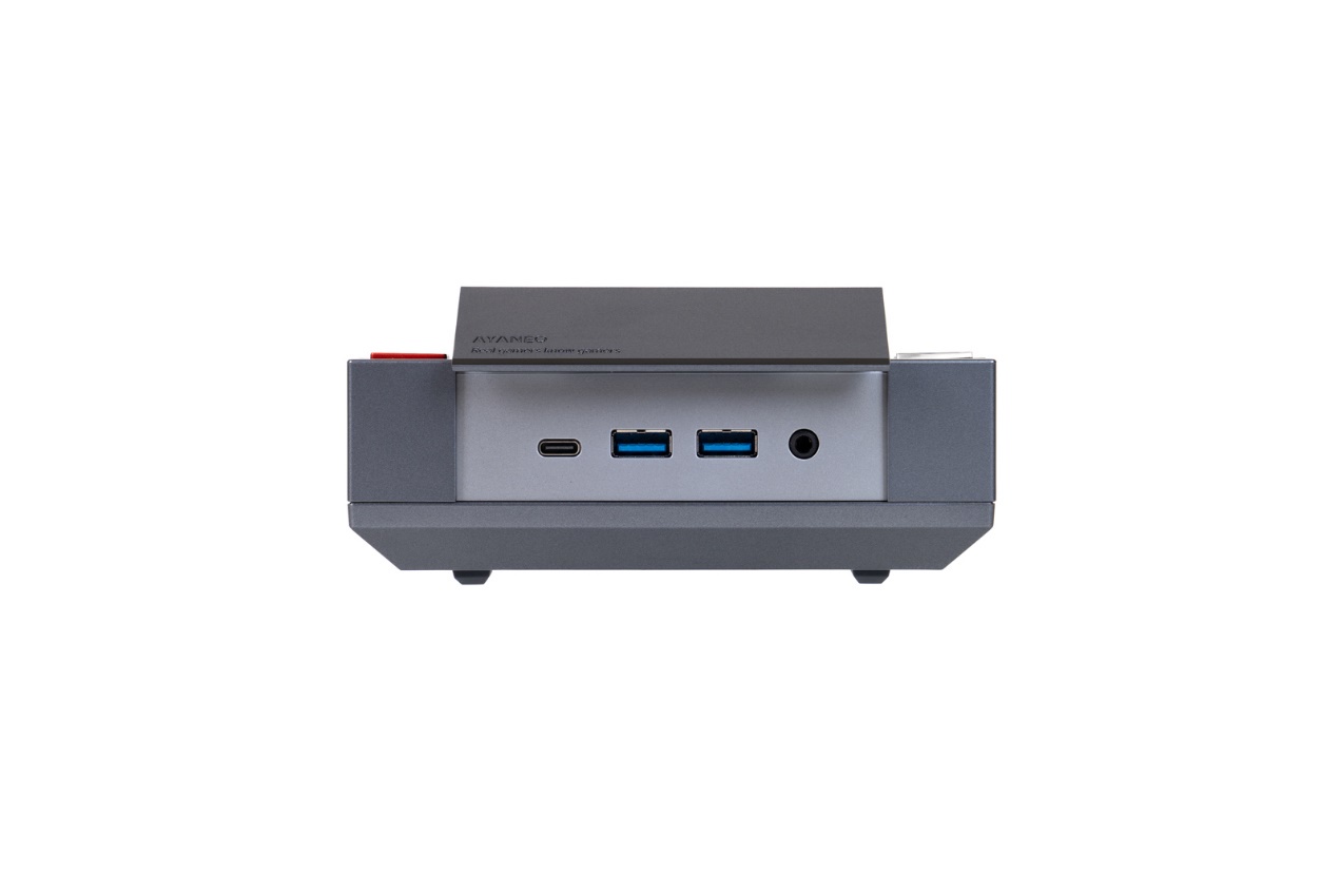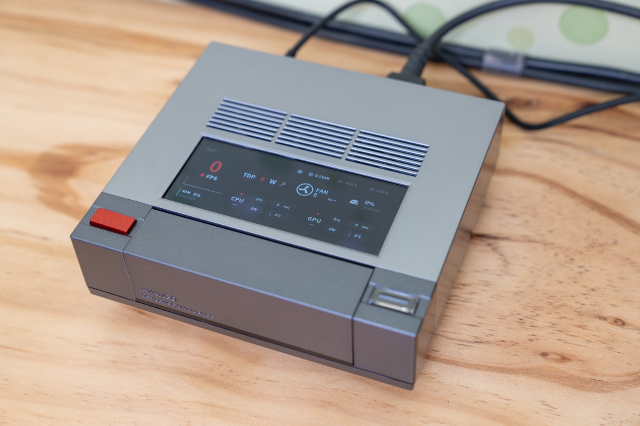 AYANEO AM02以其复古游戏机的外观和新颖的副屏玩法脱颖而出。它复刻了经典的NES游戏机外形,顶部设计有一个4英寸的触控小屏,可以触控操作实现TDP、风扇转速等调节,灵活度很高。整个机身既有对经典的致敬,又有对未来科技的展示,两者的碰撞让这款Mini PC有着很高的辨识度