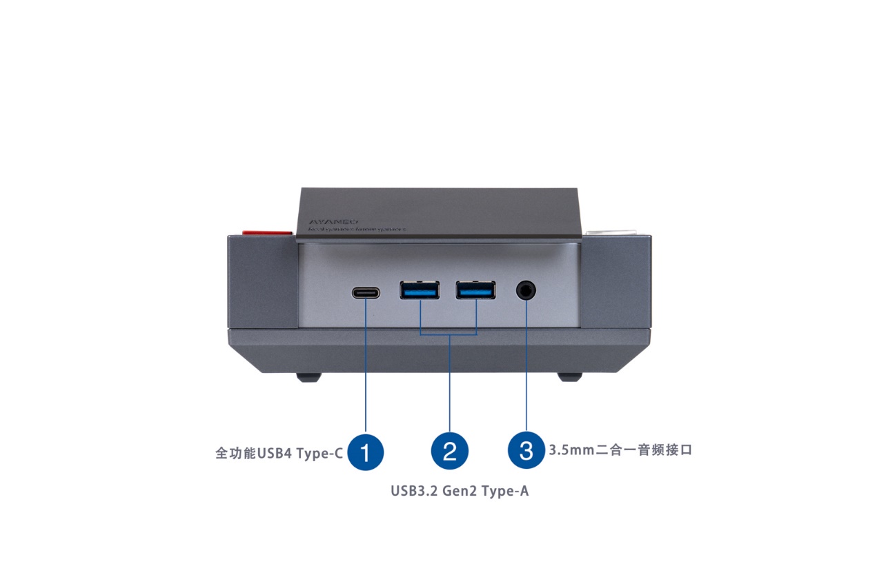 AYANEO AM02提供了丰富的接口,包括USB-C、USB-A、HDMI、DisplayPort、双2.5G以太网口等,支持三屏同显,显著提升工作效率